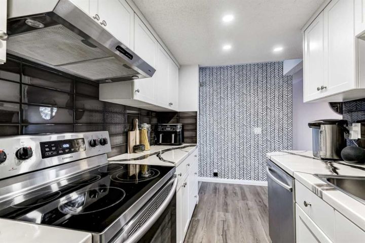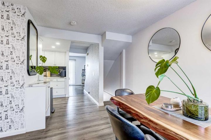 GORGEOUS, EXTENSIVELY RENOVATED 3 bedroom condo in the heart of Huntington Hills – close to schools, shopping and the scenic Nose Hill Park! Offering 1047 sqft of developed living space, the main level features living, dining, and kitchen areas, plus a mudroom with direct access to a private, fully fenced backyard. Upstairs, three generous bedrooms share a 4-piece full bath, providing comfortable family living. The list of upgrades is endless – freshly painted with newer flooring and carpet throughout. Newer kitchen appliances, countertops and cupboards, newer doors and windows, closet doors, sliding door to balcony, light fixtures, ceiling fan, and window coverings. Convenient lower-level laundry room and plenty of storage. Washer, dryer, furnace, and hot water tank were all replaced in 2022 for added peace of mind. Enjoy an attached carport (10'8" x 17'3") plus driveway (space for two vehicles) and plenty of visitor parking. The front balcony (3’6” x 17’4”) spans the entire length of the home and is accessible from the sunny living room area—perfect for morning coffee or evening relaxation. Pets allowed with Board Approval. Must be seen – you will be impressed!