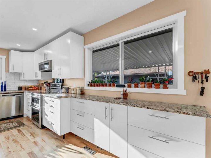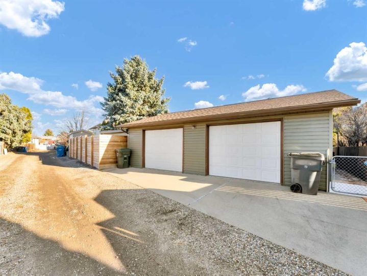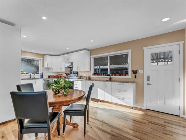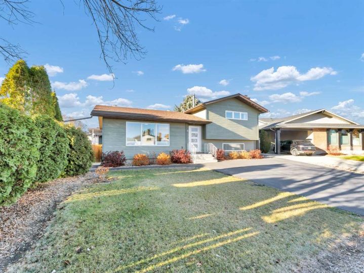 Completely move-in-ready and extensively renovated, this Ross Glen gem offers modern comfort in a fantastic family-friendly location close to schools, coulee walking paths, parks, and tennis courts. Updated exterior features include new siding, shingles, exterior doors, and vinyl windows. Inside, the home is filled with natural light and finished with beautiful birch hardwood flooring, fresh neutral paint, and tasteful new lighting throughout. The spacious living room flows into the fully redesigned kitchen, featuring white cabinetry, granite countertops, and a full stainless steel appliance package including double ovens, with the dining area offering access to the large covered deck with maintenance-free decking and a fabulous hot tub overlooking the private, low-maintenance backyard with oversized heated double detached garage and shed, plus an attractive updated horizontal-plank fence. Upstairs are two generous bedrooms and a beautifully updated 4-piece bathroom. The lower level includes more hardwood, a remodeled 3-piece bathroom with walk-in shower, and a bright family room with obscured glass windows and a gas fireplace with striking tile detail. The lowest level hosts another spacious bedroom (non-egress window), a large laundry room with eye-catching flooring, an additional rec area, and a high-efficiency furnace in the utility room. This impeccably maintained home is truly ready to enjoy.