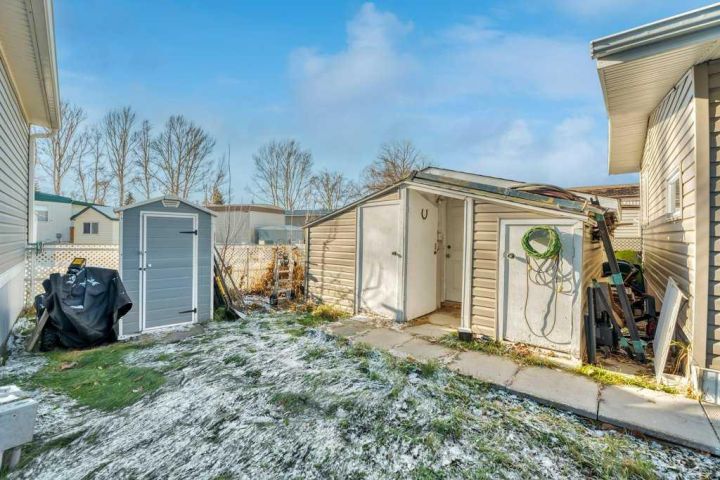 Discover affordable and centrally located living at 56-134 Village Way in the heart of Strathmore — an ideal opportunity for budget-conscious buyers who want walkability, green-space and convenience. Nestled in a well-maintained community, this mobile home with 2 bedrooms, 1 full bathroom, offers a updated bright and open layout perfect for everyday living and entertaining. With generous windows filling the space with natural light, the living area flows seamlessly into a functional kitchen ready for weekday meals or weekend gatherings. Community offers RV storage. Outside, you’ll find a wheel chair accessible entrance to the home, parking for 2 vehicles, easy to maintain side yard with storage shed, easy access to nearby walking paths, parks and open green spaces — perfect for quiet strolls after dinner. Shopping, cafés, library, services and amenities are just minutes away, giving you the kind of convenience that makes daily life simpler and more enjoyable. Whether you're a first-time buyer, downsizing or after a smart move in today's market, this home delivers on value, location and lifestyle. Pad fee $685.00/month. Immediate possession available. Don’t miss your chance to get into this central community where everything you need is literally steps away.