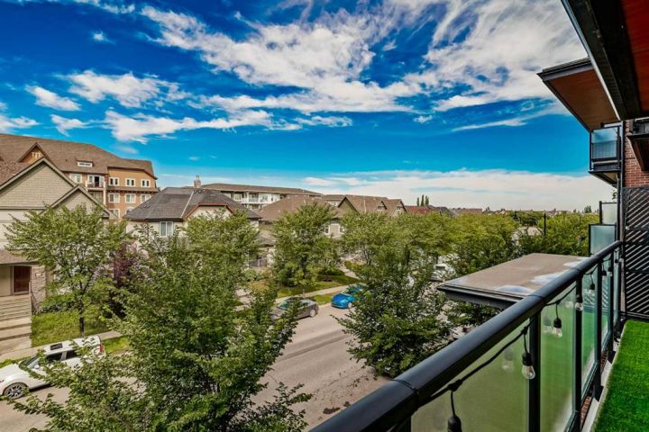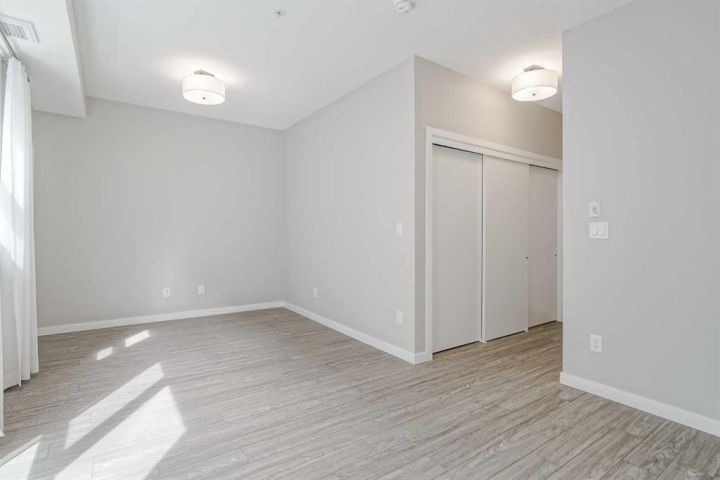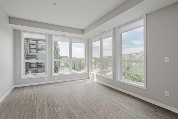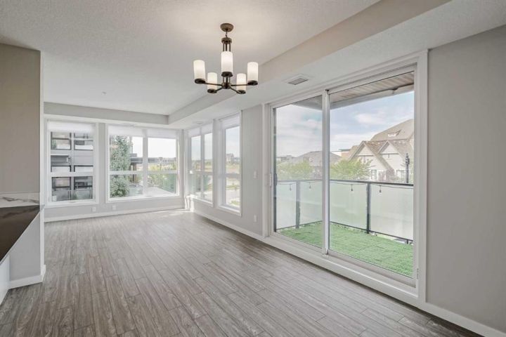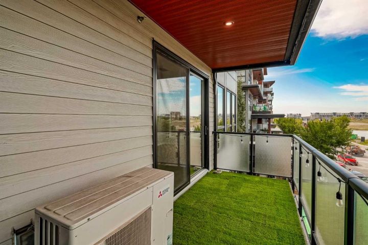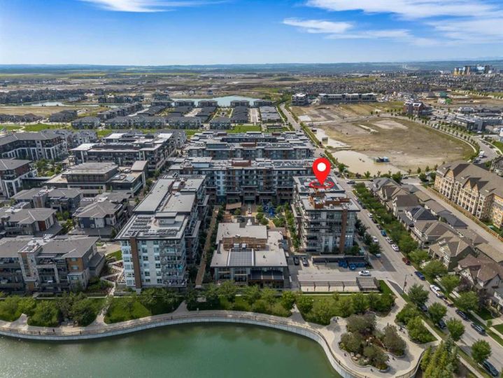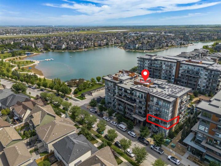 *EXPERIENCE ELEVATED LUXURY LIVING AT WESTMAN VILLAGE* Welcome to an exceptional opportunity in the prestigious, resort-style community of WESTMAN VILLAGE- a rare offering designed for those who value sophistication, comfort, and an unparalleled lifestyle on Calgary’s largest and most celebrated lake. FORMER SHOWSUITE at WESTMAN VILLAGE, this exquisite corner-unit 2-bedroom, 2-bath residence with two titled parking stalls redefines luxury condo living. Spanning 1,050 sq ft, this air-conditioned home is bathed in natural light thanks to its premium corner position and generous windows throughout. Elegant 9-foot ceilings, wide-plank luxury vinyl flooring, and an open-concept layout create an inviting sense of space and serenity. The beautifully designed modern kitchen features sleek WHITE cabinetry, quartz countertops, and a refined colour palette that flows seamlessly into the bright and spacious living area. This outdoor patio is a sanctuary and a standout feature - an ideal extension of your living space, perfect for morning coffee, al fresco dining, or sun-filled relaxation. The oversized primary suite is a true retreat, offering ample space for a sitting area or workspace, custom closets with built-in organizers, and a private 3-pc ensuite with stylish, modern finishes. The spacious second bedroom includes a walk-in closet and large window, perfect for guests, family, or versatile use with convenient access to the full, 4-pc bathroom. Additional conveniences include in-suite laundry and a large pantry/storage room, ensuring both comfort and practicality. Perfectly crafted by Jayman BUILT, this residence showcases design integrity, with triple-pane windows, and forced-air heating and cooling.