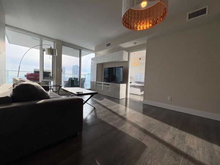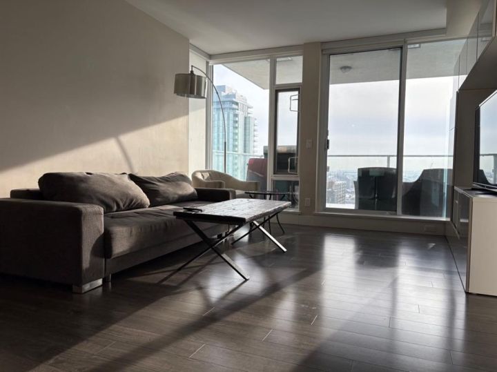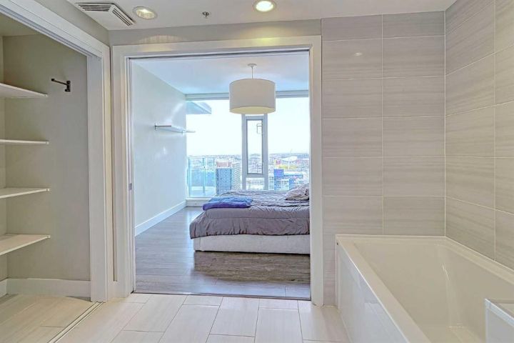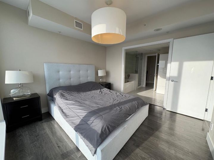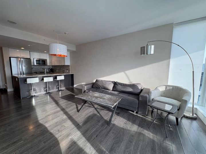 This luxury unit offers a beautiful kitchen with GAS STOVE, huge stone countertop, and plenty of cupboards. There is a dining area, a cozy living room with access to a good size balcony, a bedroom with a posh 4PC ensuite and a walk-in closet. Both living room and the bedroom have FLOOR to CEILING windows facing south. ***Enjoy the spectacular views***
