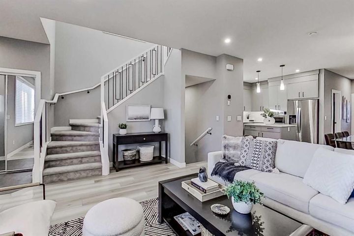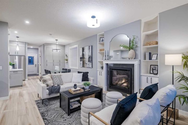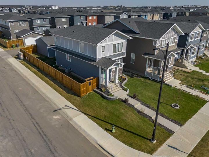 On a large corner lot w/ rare extra parking, this home stands out immediately—for its location, welcoming curb appeal, and design. The backyard holds a double garage, and there’s even room beside it to create an additional parking pad w/ a simple fence modification. Inside, the house is bright from the moment you walk in. Extra windows, open railing, and 9’ ceilings on both the main floor and the 9-foot basement give the home a sense of volume that most properties in the area can’t match. The main floor includes an office that can double as a small bedroom and a half bath w/ a full vanity. The living room centres around an oversized fireplace fit for a King & Queen—framed by custom built-ins that instantly elevate the space. Storage is a quiet strength throughout, w/ a whole pantry wall in the dining area, a kitchen island w/ additional storage, and more cabinet space than you’ll use. The kitchen is clean & modern, w/ excellent sightlines, plenty of prep space, and a smooth flow to the rest of the main level. Upstairs, the primary suite delivers what most buyers are actually hunting for: a well-proportioned bedroom, a walk-in closet w/ built-in shelving/drawers, and an ensuite w/ a large dual vanity, a deep soaker tub and a generous walk-in shower. Two more bedrooms (one w/ a walk-in closet w/ built-ins), a laundry closet, and a full bath finish the floor. The window coverings throughout the home are high-end silhouette-style blinds, an upgrade that adds softness & light control. Additional upgrades include A/C, a water softener, and a complete radon mitigation system for peace of mind. The basement remains unfinished but is well set up, w/ 9’ ceilings, two large egress windows, and a layout that makes future development straightforward. Outside, the yard is fully fenced & freshly stained. The roof on both the house & the garage is new as of October 2025. At 1,651 sq ft above grade, this home offers a balanced, intelligently designed layout in a location that’s only getting better w/ every new amenity being built around it. The corner lot, the light, the upgrades, the storage, the parking—everything adds up to a home that’s hard to beat in this price bracket. Chelsea continues to grow into one of Chestermere’s most appealing new communities, w/ pathways a block from the home that link you to parks, playgrounds, and the extensive trail system shared w/ neighbouring Dawson’s Landing—including future pathway access to the 22-acre eco-park located a few blocks away. Amenities are on the way as well. A new public K–9 school in Dawson’s Landing has full construction funding; a future Grades 10–12 public high school is planned for Chelsea; and a new Catholic K–9 school is also in the works. Chelsea’s upcoming shopping district will add everyday conveniences, including a future grocery store and additional retail and services, all within minutes of the home. It’s a location w/ strong outdoor appeal today and meaningful long-term upside as the community build-out continues.