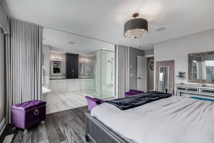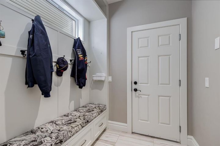 The west-facing vaulted bonus room impresses with added depth, ceiling height, and natural light—perfect for family movie nights or entertaining. The elegant primary suite features a large walk-in closet and a spa-inspired 5-piece ensuite with Kohler fixtures, dual sinks, deep soaker tub, fully tiled shower, and heated tile flooring with a dedicated control unit. Two additional bedrooms, a full bathroom, and an upper laundry room with added cabinetry complete the upper floor.
