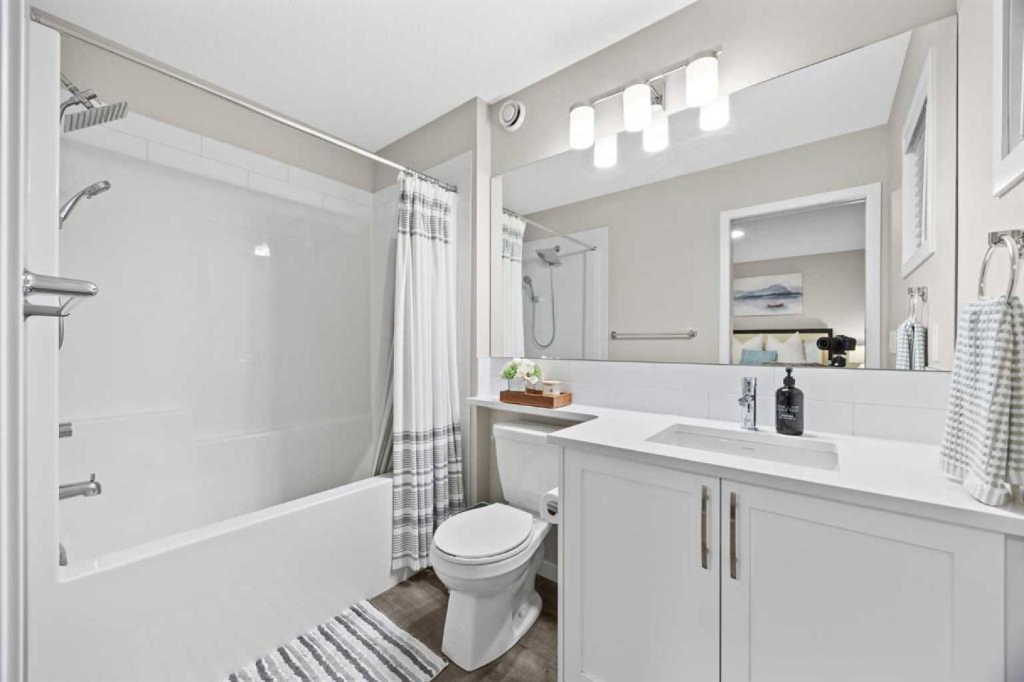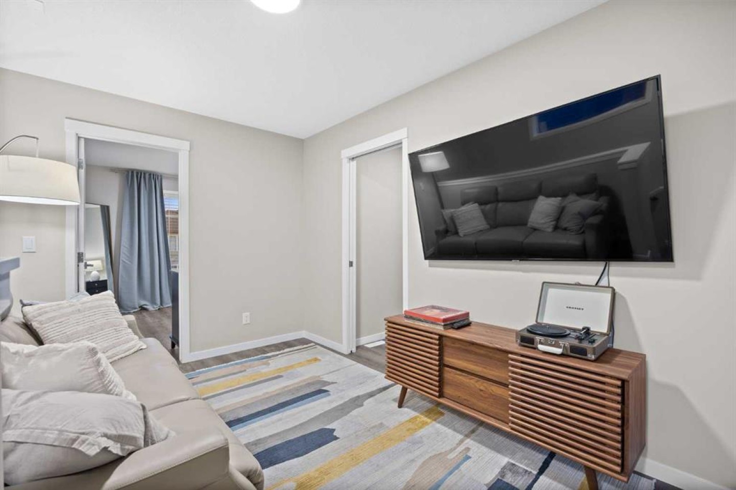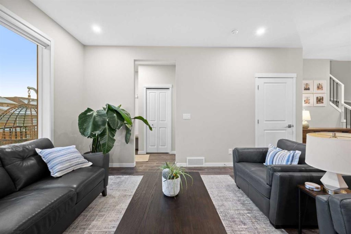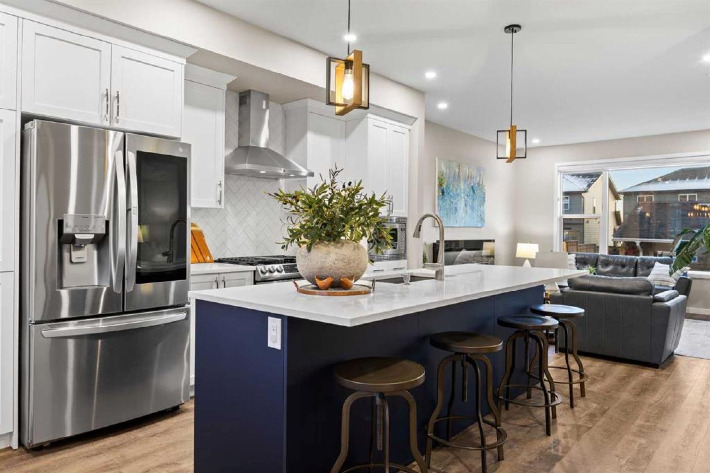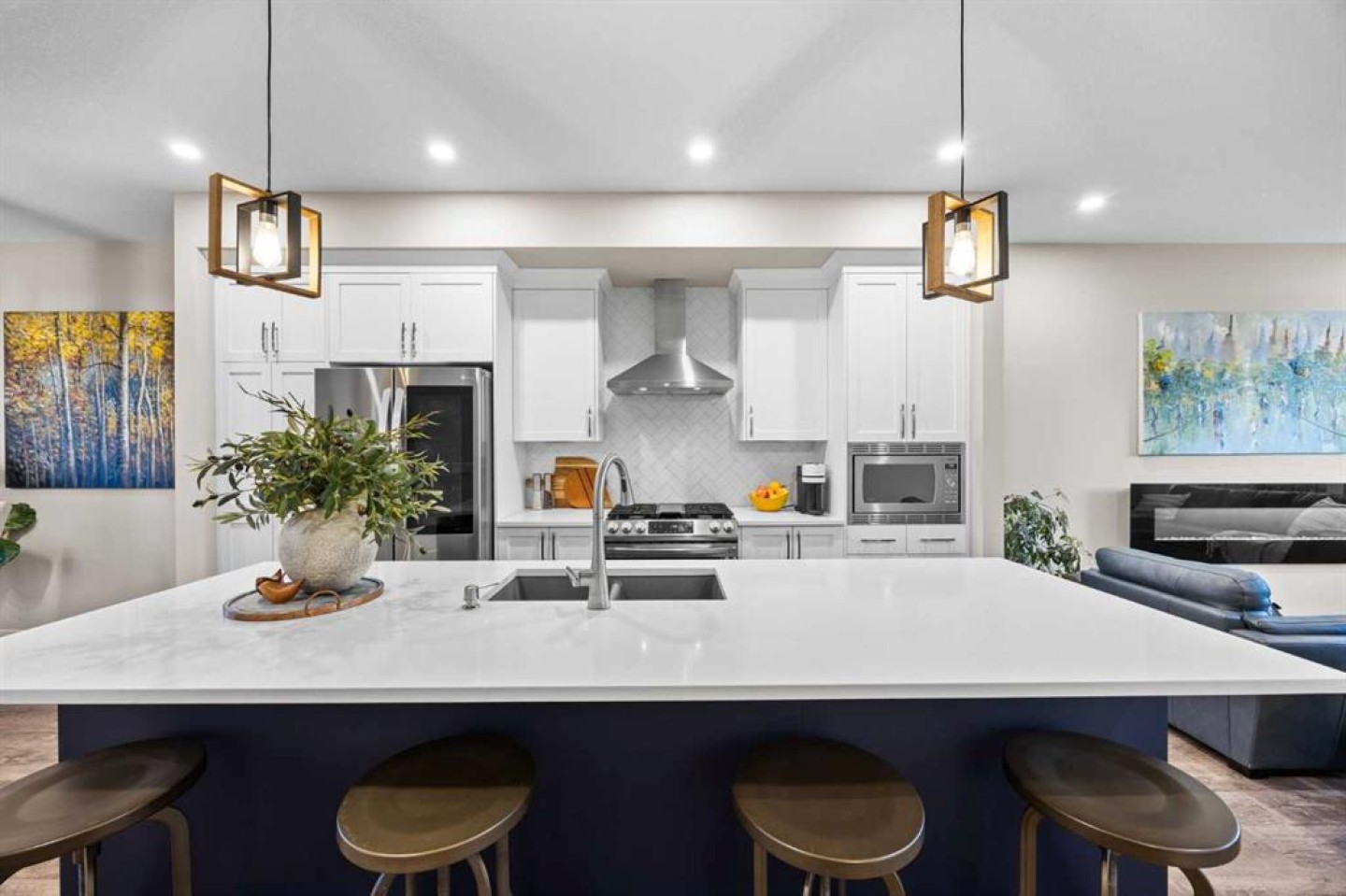 Highly upgraded throughout, professionally finished basement with side entrance and illegal suite potential, south facing backyard with massive composite deck, NO CARPET, transferable new home warranty!! Welcome to this immaculately cared for home, conveniently located on the north side of Okotoks - commuting to Calgary is a breeze. Offering a bright and open main floor with a spacious dining area, central kitchen with 2 tone cabinetry, quartz countertops, upgraded appliances - including gas range and built-in microwave. The spacious living room has an electric fireplace, big south facing window and extra pot lights. The main floor also offers a 2 pc bathroom and access to the SOUTH FACING backyard with 2 tiered composite deck that leads to the double detached garage with epoxy flooring. Upstairs you’ll enjoy the double primary layout separated by a bonus room and laundry room with added storage. Both bedrooms have ensuite bathrooms - upgraded to quartz countertops. The professionally finished basement has a convenient side entrance that leads down to the large living room with an electric fireplace and feature wall. There is an L shaped kitchen with sink, fridge and 220v wiring. An additional bedroom with a large window and full bathroom with tiled shower, washer/dryer hookups and under stair storage complete this space. The home also features a water softener, custom window coverings throughout (2 main floor windows are motorized), BBQ gas line, exterior gemstone track lighting and a landscaped front yard with stone patio - no grass to cut here!