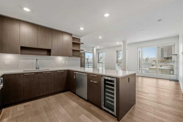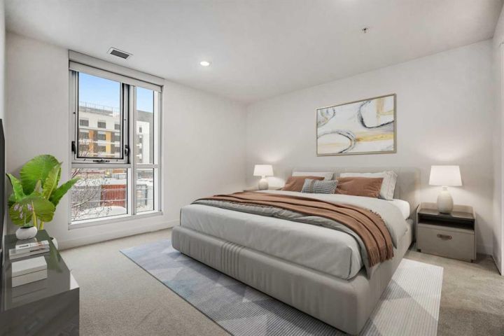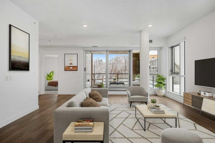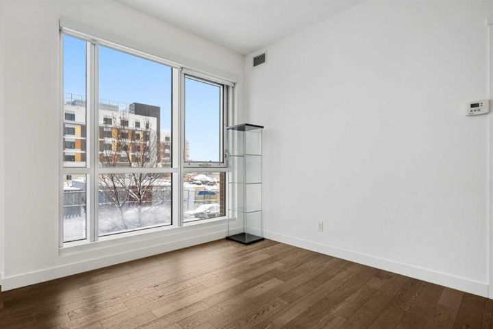 **Open House Sunday November 29th 1-3pm**Modern comfort, thoughtful design, and an unbeatable Bridgeland location come together in this beautifully refreshed residence at Unit 223, 88 9 Street NE. The home has been recently repainted, giving every room a clean, crisp feel that pairs perfectly with the building’s contemporary aesthetic. Large windows bring in generous natural light, enhancing the open-concept layout and creating an inviting atmosphere throughout the main living space.