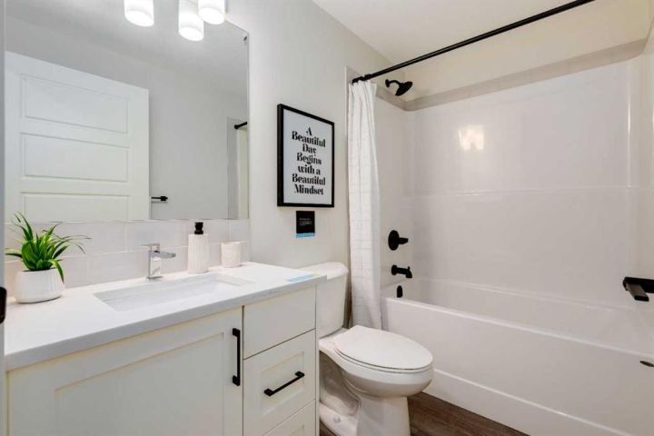 Welcome to the Braeburn at ZEN Livingston – a stylish, energy-efficient townhome! Offering 518 sq ft of thoughtfully designed space, this 1 BED, 1 BATH home features triple-pane windows, advanced insulation, and modern construction that keeps utility bills low and comfort high. The open-concept main floor boasts LUXURY VINYL PLANK flooring and a bright living area. The sleek kitchen is complete with quartz countertops and a 6-piece Whirlpool appliance package. Built with HARDIE BOARD siding (hail/fire-resistant) for long-lasting durability, this home is ideal for first-time buyers. Be part of a vibrant community just steps from the Livingston Hub with splash park, rink, courts & more! Plus, enjoy quick access to Stoney Trail (3 min), YYC Airport (13 min), and CrossIron Mills (11 min).
