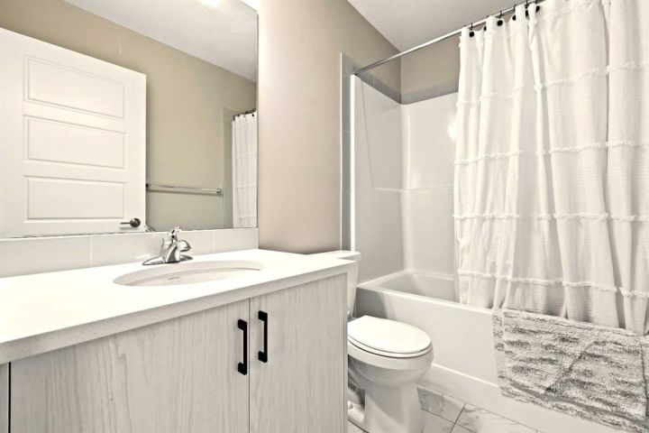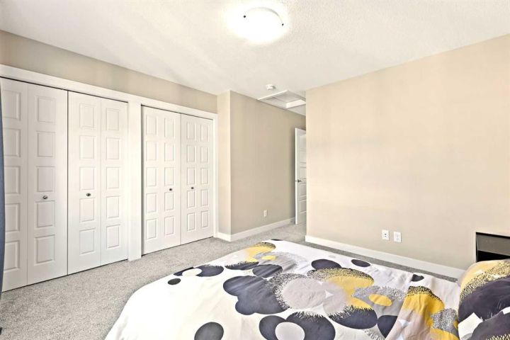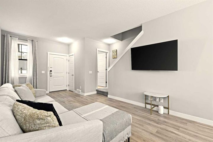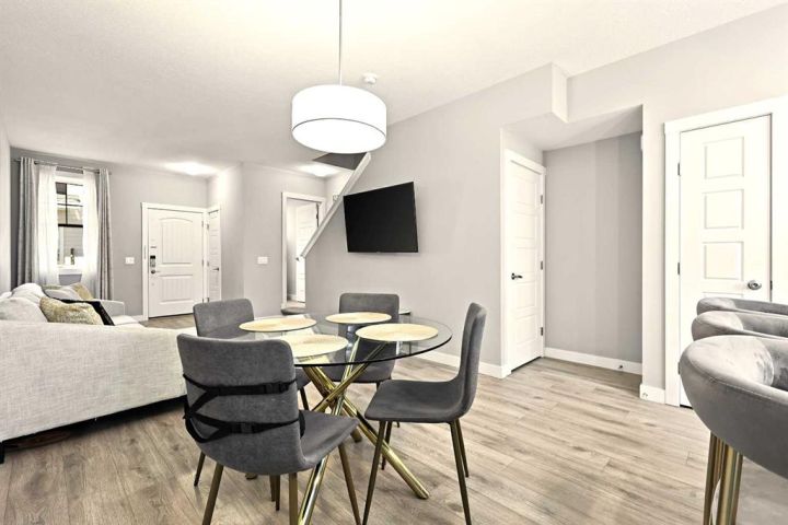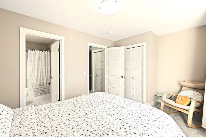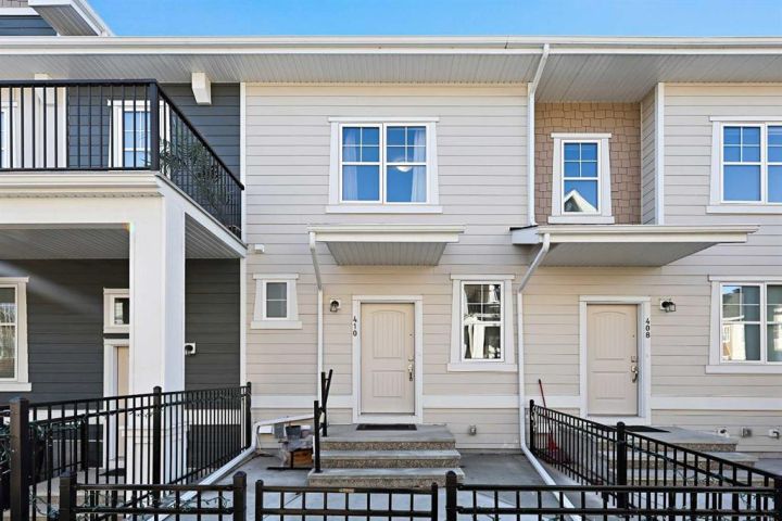 Welcome to the serene and sought-after community of Riverstone in Cranston, where nature becomes your neighbour and the Bow River’s beauty is just steps from your door. Framed by lush green spaces, parks, playgrounds, and an endless network of scenic walking paths, this newer-built 2-storey townhome offers the perfect blend of tranquility and modern convenience. Boasting nearly 1,200 square feet of thoughtfully designed living space, this home welcomes you with a bright, airy colour palette and an inviting sense of openness. The expansive main floor showcases stunning barn-style wide plank luxury vinyl flooring that flows seamlessly from front to back, tying the entire space together with both durability and style. The spacious living room transitions effortlessly into the designated dining area, creating the ideal layout for everyday living and entertaining. At the heart of the home, the gorgeous kitchen features an oversized stone island with flush eating bar, quartz countertops, timeless subway tile backsplash, a designer chimney hood, sleek stainless steel appliances, a convenient pantry, stylish pendant lighting, and impressive 9-foot ceilings that enhance the overall airy ambiance. A perfectly placed half bath completes the main level. Upstairs, you’ll find two beautifully appointed primary bedrooms, each offering its own private 4-piece ensuite—both complete with full tubs—making the upper level ideal for guests, roommates, or family members seeking their own space. The convenience of upper-floor laundry adds a touch of everyday luxury. The lower level hosts the double attached tandem garage, providing ample room for parking, storage, and lifestyle flexibility. Step outside to your spacious fenced concrete patio, an inviting outdoor haven perfect for morning coffee, evening dinners, or simply relaxing in the peaceful Riverstone surroundings. Located in one of Calgary’s most treasured natural communities, you’re just minutes from Deerfoot Trail, Stoney Trail, and the abundant amenities of Seton, including restaurants, shopping, a movie theatre, the South Health Campus, and the world’s largest YMCA. With the shops of 130th Avenue also close by, you’ll enjoy the rare balance of serene living paired with easy access to big-city conveniences. Experience the peace, beauty, and elevated lifestyle of Riverstone—where modern living meets nature’s finest. Welcome home.