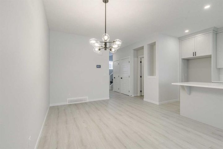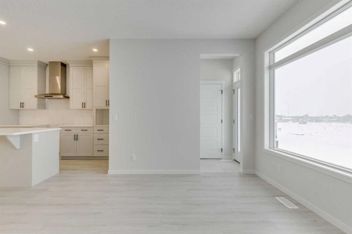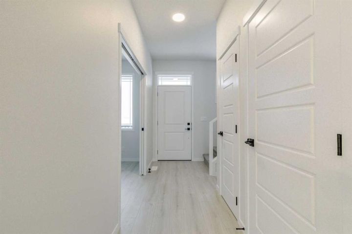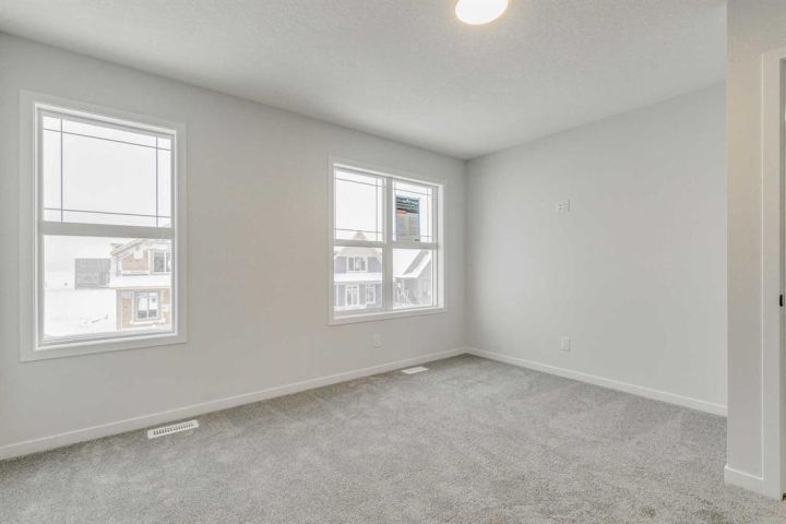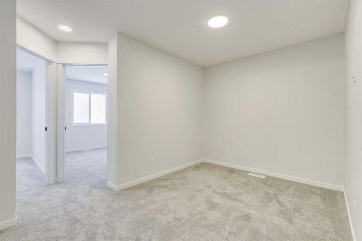Welcome to this stylish Morrison Homes spec property located in the beautiful community of Sirocco in Pine Creek, SW Calgary. The main floor offers a functional layout with an enclosed den perfect for a home office, a bright living room, luxury vinyl plank flooring, pot lights, a walk-in pantry, and a well-appointed kitchen featuring quartz countertops throughout and a modern island ideal for meal prep and gathering. A convenient 2-piece bathroom completes the main level. Upstairs, a spacious bonus room provides an additional living area separating the three bedrooms. The upper level also includes a dedicated laundry area for added convenience. The primary bedroom features its own 3-piece ensuite with a standalone tiled walk-in shower, while the remaining two bedrooms are served by a comfortable 4-piece bathroom. The basement is currently undeveloped, offering a blank canvas for your own customization. This home also includes a separate entrance, basement suite rough-ins offering excellent potential for a future suite development (A secondary suite would be subject to approval and permitting by the city/municipality). With thoughtful design, quality finishing, and room to grow, this property delivers exceptional value in one of Calgary’s rapidly developing SW communities.