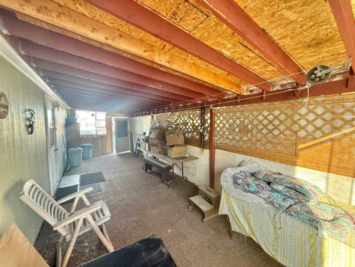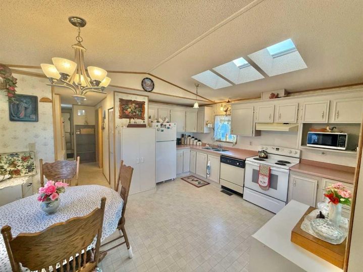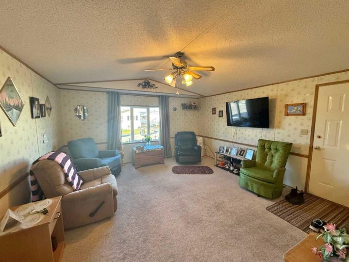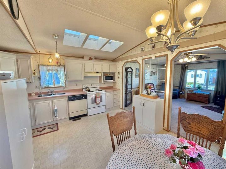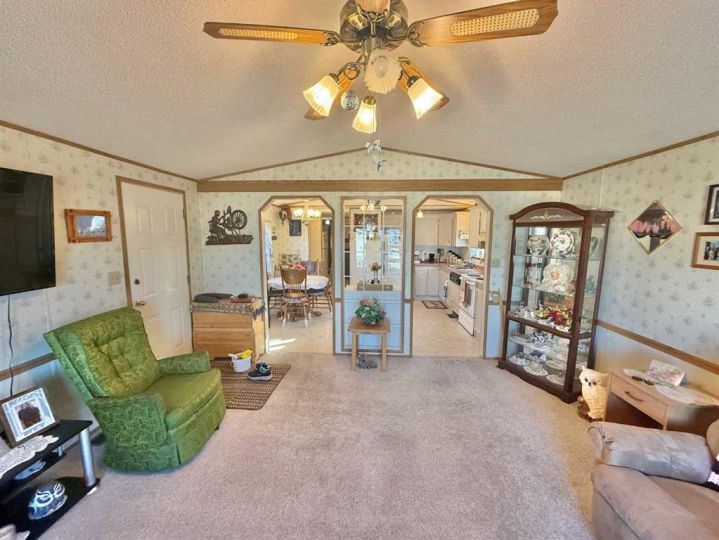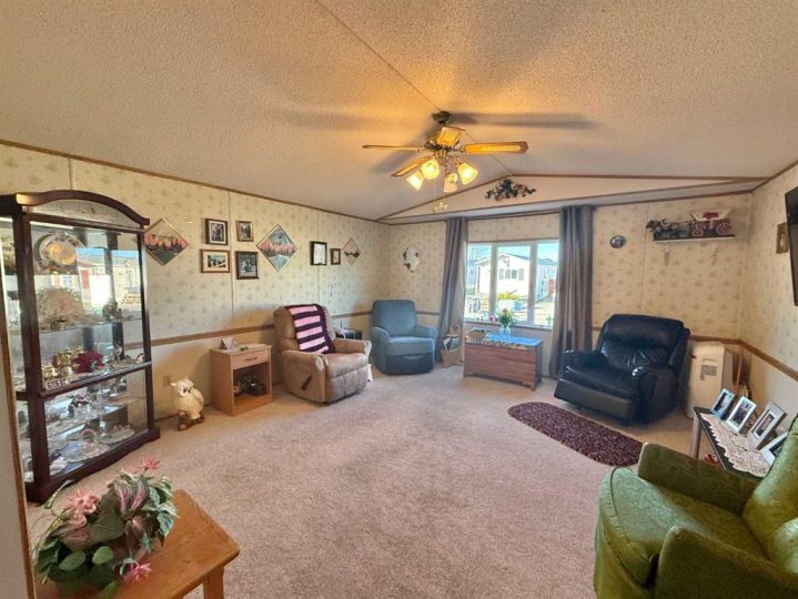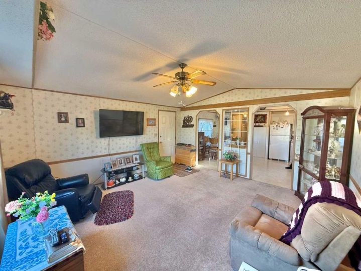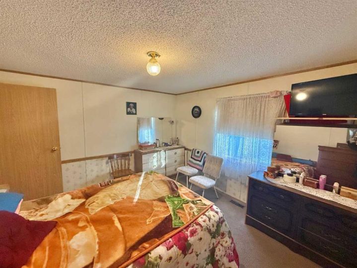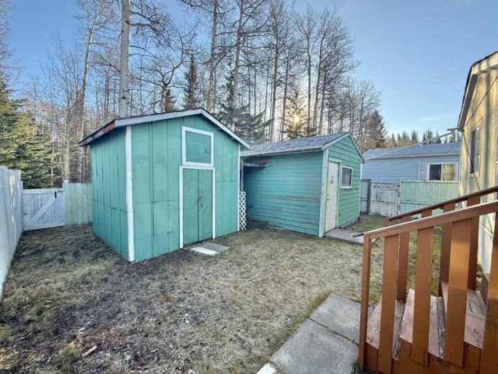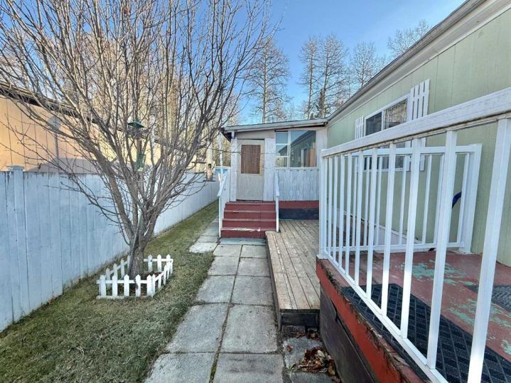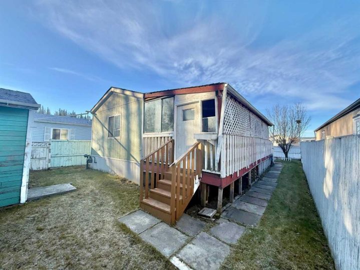 Older, well kept single wide manufactured home on its own lot in the family friendly East Hardisty district. This home has served as a lovely family home for a generation. Despite its older finishings, this home has been gently lived in for many years and would greatly appreciate with renovation. The home backs onto green space and has a large covered deck space to protect you from the elements plus 2 large sheds in the back. It also features 3 beds and 1 full 4PC bathroom. There is a nice open kitchen and dining area. Many of the windows have been updated to vinyl. The furnace also has been updated. This home has tons of potential and is priced very competitively to account for any potential renovations that might be needed. The seller has provided an inspection report for any interested potential buyers