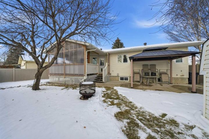 Welcome to 108 Dunham Close — a warm, inviting bungalow in the heart of Deer Park, one of Red Deer’s most desirable family neighbourhoods. This fully finished home offers five bedrooms and three bathrooms on a semi pie-shaped lot, giving you added privacy and yard space. Inside, you’ll find newer flooring, updated appliances, updated main bathroom, a bright and spacious kitchen with a generous dining area, and a comfortable living room centered around a cozy gas fireplace. The covered south-facing deck extends your living space outdoors, perfect for early coffee or evening unwinding. Convenience is a theme here, with main-floor laundry, air conditioning, underground sprinklers, and a three-way heated garage that’s ideal for winter and year-round projects.