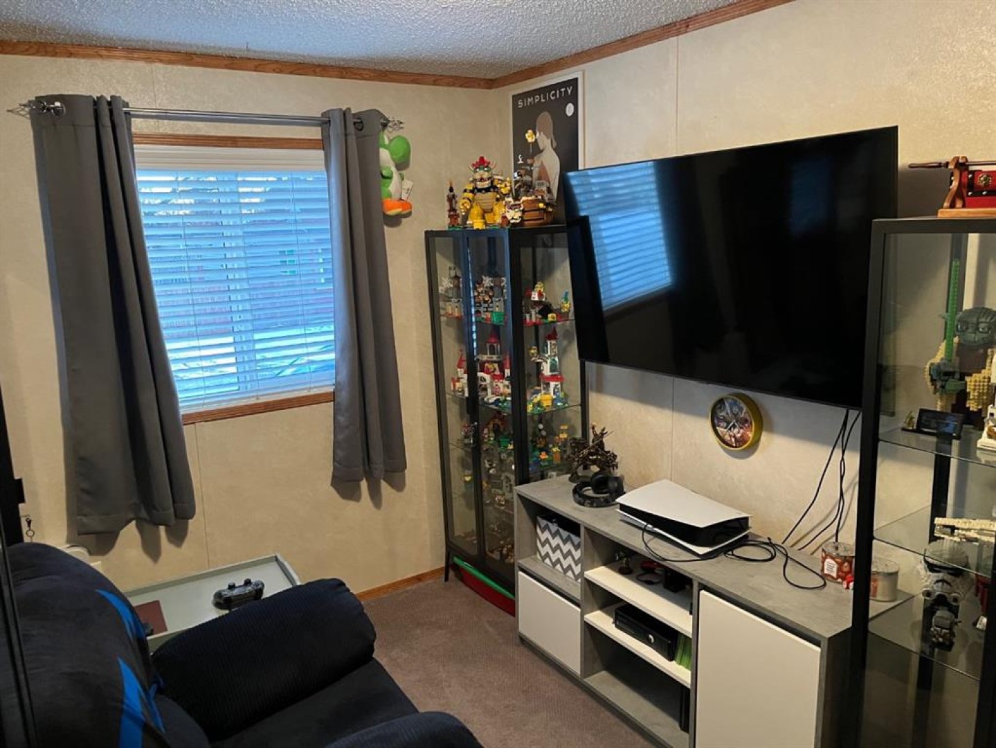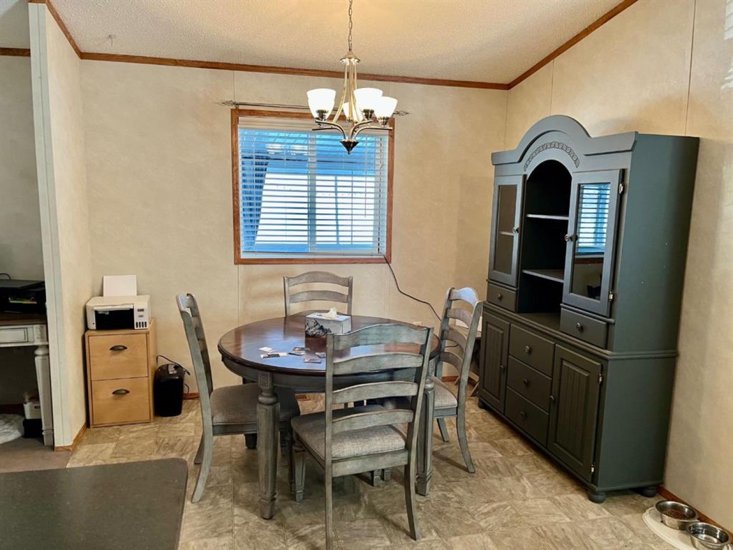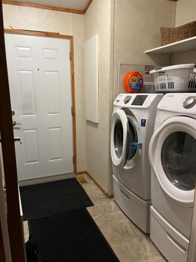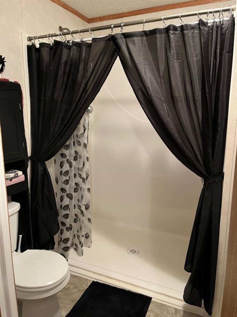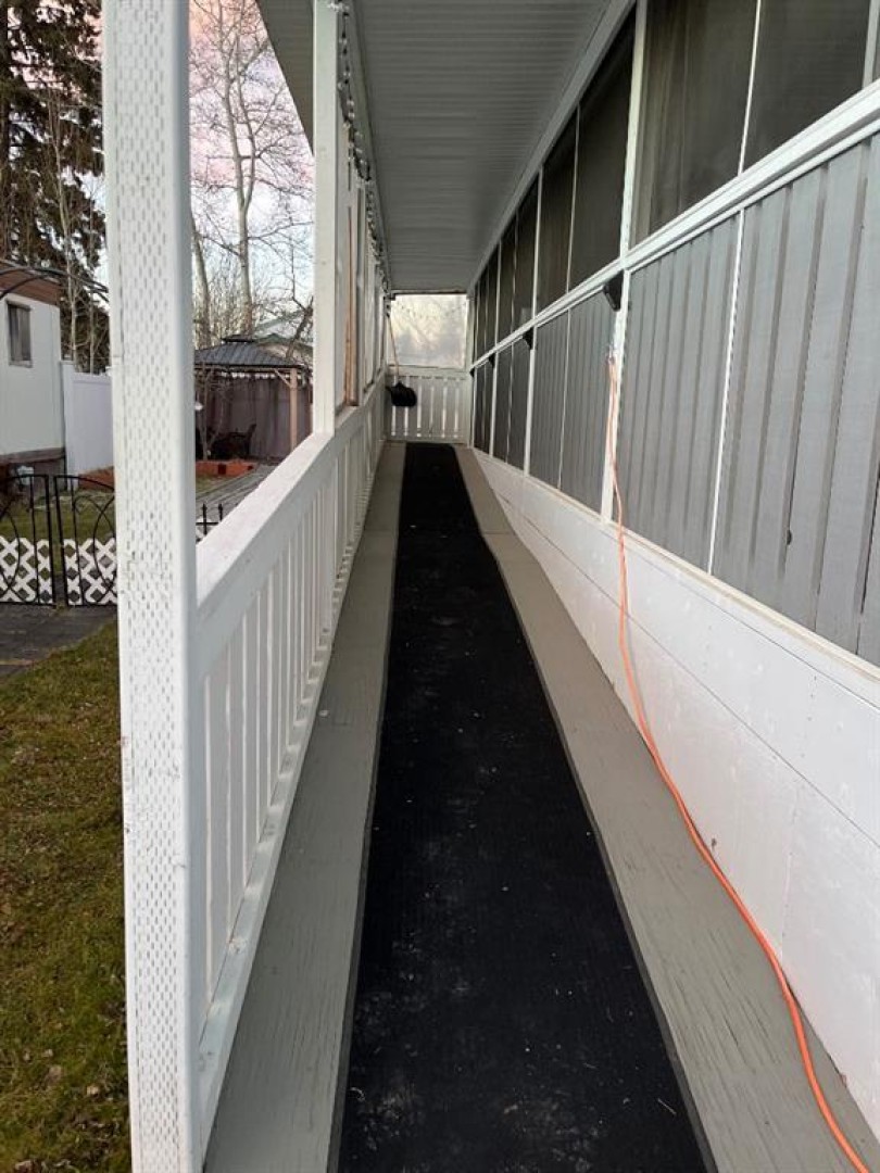 Ideal home with wheel chair access. This 2012 home is 1520 sq ft. 4 bedrooms and 2 full baths, one bathroom is set-up with an easy access walk-in shower. The living room, dining room and kitchen is an open floor plan with 9 ft. vaulted ceilings. The spacious kitchen is equipped with stainless steel appliances and an abundance of cabinetry with the dining area off to the side. The living room is a comfortable area for the family to enjoy. At the one end is 3-bedrooms and a 3-pce. washroom with a walk-in shower. The other end is the primary bedroom with a 4-pce ensuite and walk-in closet. The laundry room is at the back entrance along with the furnace and hot water tank. The 12X40 deck is covered and screened in for a nice 3-season area; with a long wheel chair access ramp which carries on into the back yard to the gazebo. The 2 sheds are included with garden boxes. There is also a thriving apple tree in the yard. This home and yard shows beautifully and is neat as a pin. Water, sewer and garbage are included in the lot rent.