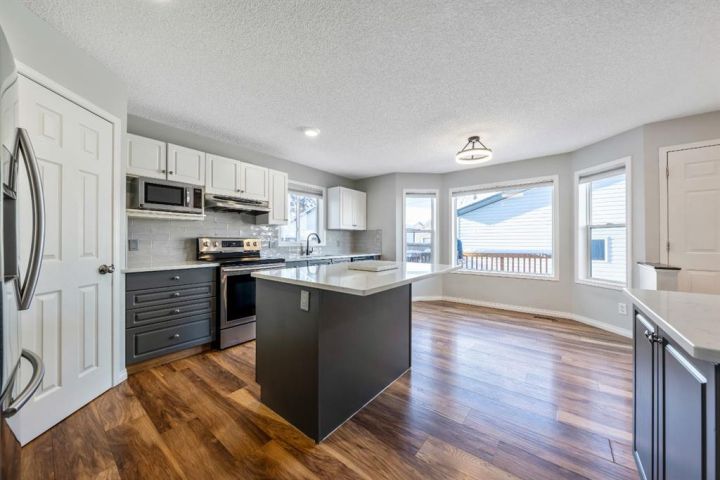 Welcome to 55 Mt. Apex Green SE — a move-in ready two-storey family home in desirable McKenzie Lake. Thoughtfully located steps from a neighbourhood park and within a block of local schools, this home blends everyday convenience with comfortable, modern living. Bright main-floor living flows into a completely renovated kitchen finished to modern tastes — featuring contemporary cabinetry, granite countertops, stylish back-splash, and an open layout perfect for family dinners and entertaining. Upstairs offers 3 well-proportioned bedrooms with a 4-piece primary ensuite, while the finished lower level provides an additional family room along with a flexible living space for a home office, media room, rec room, or work-out space.