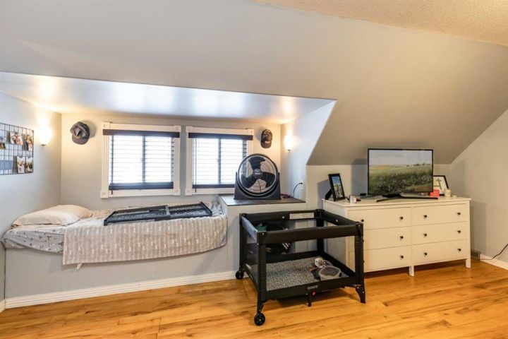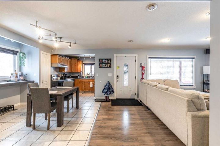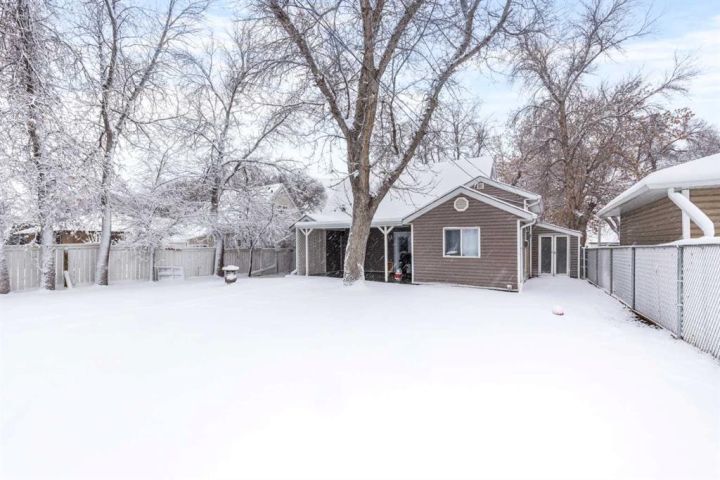 Welcome to this inviting 1.5 storey home nestled in one of Medicine Hat’s most desirable neighbourhoods. With a thoughtful layout, charming character, and modern conveniences, this home offers comfort, versatility, and walkability all in one package. Step inside to an open main floor featuring a bright living room, dining room and kitchen. Off the main living area is a bonus/flex room that can function as a home office, dining area, playroom, or reading nook. The main floor also includes two good-sized bedrooms and a convenient 3-piece bathroom with laundry. Upstairs, retreat to the private primary suite—your own tucked-away oasis—complete with a spacious bedroom and a 4-piece ensuite. You’ll love the ease of indoor-outdoor living thanks to the patio doors leading to a covered patio and fenced backyard, perfect for pets, kids, or summer evenings. An additional brick patio off the garage is the perfect place for a pergola or fireplace. There’s also an adorable front porch, plus off-street parking both in front and in the oversized single detached garage.