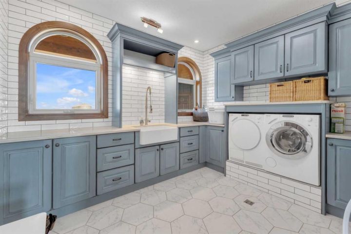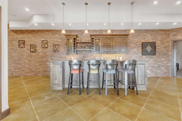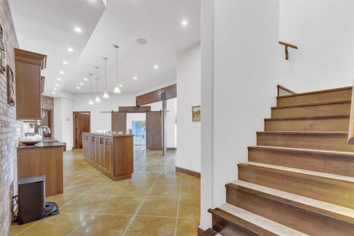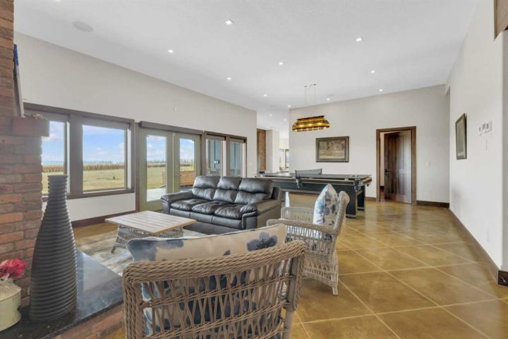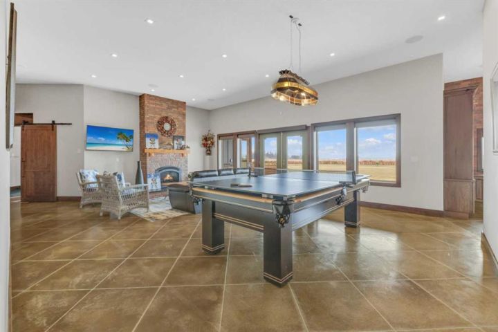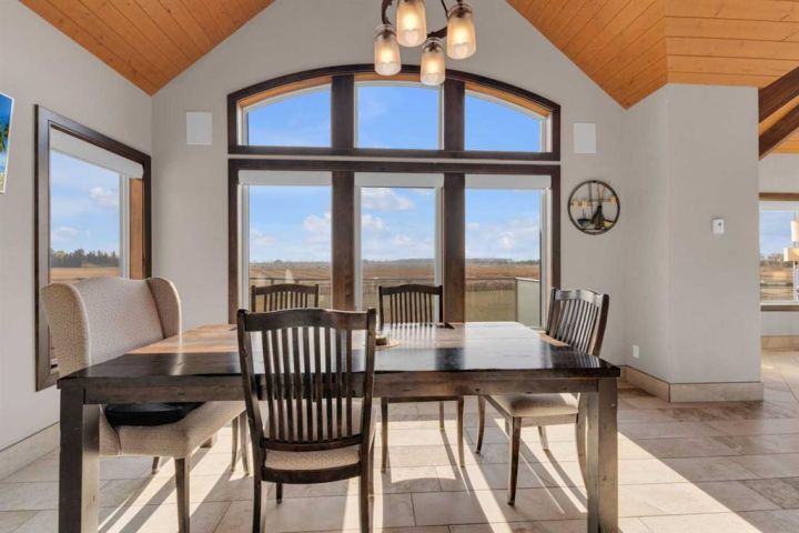 This estate presents the rare combination every buyer hopes to find: an architecturally stunning home, a fully equipped commercial grade shop, and nearly 100 acres of productive farmland, all crafted to exceptional standards. Construction began in 2014, with the home progressing through a meticulous multi year build and receiving full compliance and occupancy approval in 2017. Offering over 6,850 sq ft of refined living space (3,687 sq ft above grade + 3,163 sq ft below), this custom Linwood Homes estate provides privacy, accessibility, and rural serenity just minutes from Red Deer, Lacombe, Sylvan Lake, and the QE2. Inside, rich cherrywood cabinetry, beams, intricate tilework, and 27 foot vaulted ceilings define the warm, luxurious atmosphere. The gourmet kitchen offers quartz counters, built in Miele appliances, LED lighting, and a large walk in pantry. Triple pane windows frame expansive views, while the living room’s stone surrounded woodstove and the family room’s gas fireplace create inviting gathering spaces. The primary suite features a spa inspired ensuite with steam shower, infrared sauna, dual sinks, and a large walk in closet. Additional bedrooms, a den, and a walkout basement with theater room and gym enhanced by fully insulated interior walls offer exceptional versatility. The lower level showcases polished concrete floors and a custom bar with cooled wine storage and beer tap, flowing to a lounge with gas fireplace and a covered patio. Two offices, a luxury laundry room, and a second garage entry laundry add convenience. The newly resurfaced main deck (2025; $23,500) and infinity swim spa maximize outdoor enjoyment. Comfort is ensured with three A/C units, two boilers, forced air, in floor heat, RO water system, spray foam insulation, and full weeping tile. Exterior features include cedar soffits and beams, board and batten siding, and Lindab steel eavestroughs. A 19 kW solar array (47 panels) significantly offsets utility costs. The heated 45'×29' attached garage provides ample space. The 250'×60' industrial grade shop offers 18 ft ceilings, reinforced concrete, a 72 ft heated section with in floor heat, 2 post lift, five 16'×24' doors, an 18'×40' hangar door, full kitchen/staff room, sump, LED lighting, filtration, R60 insulation, and buried air and water lines. Set on 98.28± acres with 86± acres of #2 cropland, the property also includes a 1.42 acre surface lease ($3,900/yr), six 5,000 bushel grain bins, four hydrants, separate septic systems for the house and shop, and a second serviced homesite, an exceptional blend of beauty, function, and long term legacy.