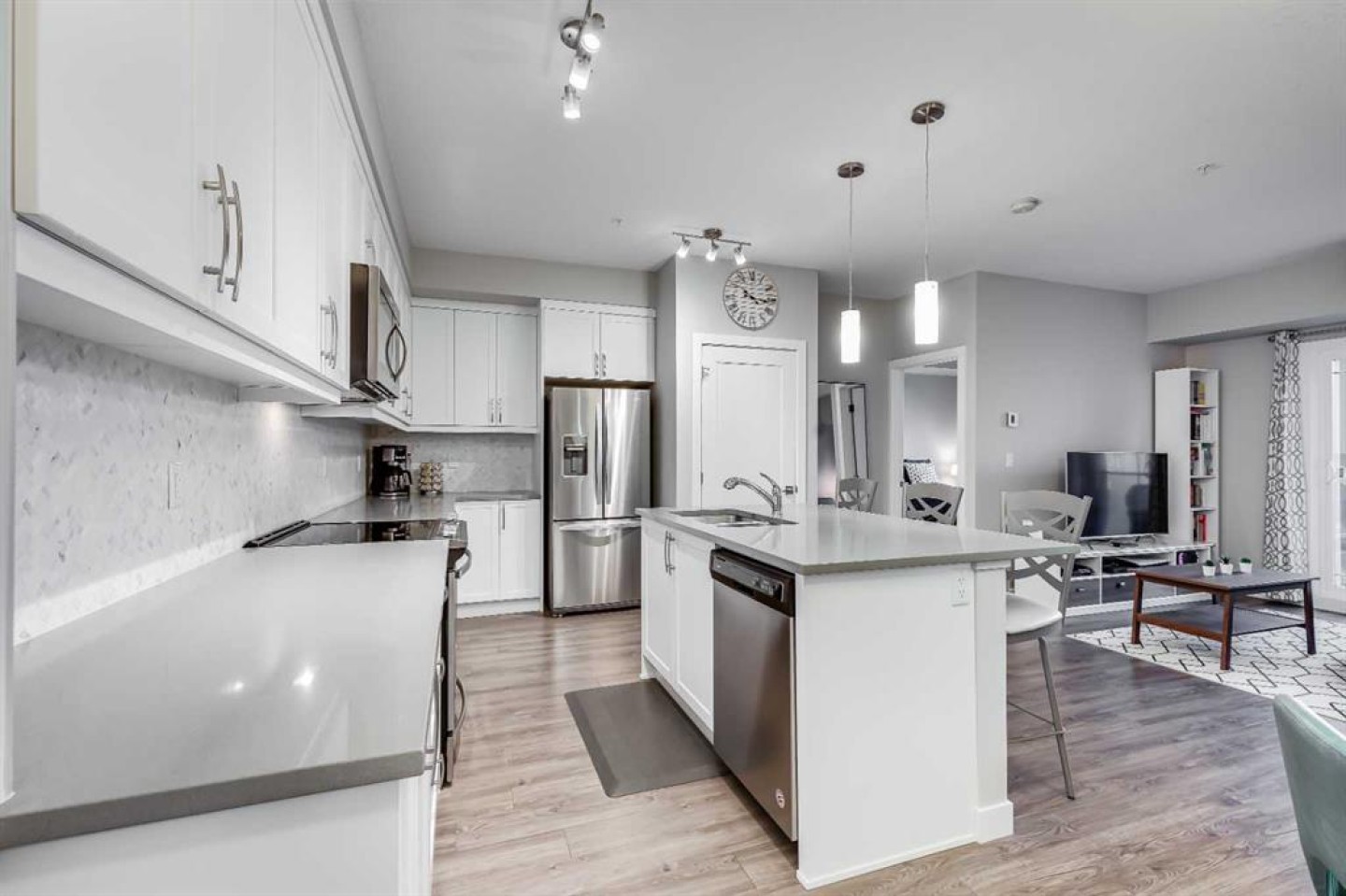 Welcome to the Regatta in Auburn Bay. Discover the thoughtfully designed Delta floorplan, offering a spacious kitchen with quartz countertops, stainless steel appliances, ample cabinetry, generous counter space, large island and in suite laundry —perfect for everyday living or entertaining. Added upgrades include in-unit air conditioning and sun-control window film on all windows, ensuring year-round comfort while helping reduce heat and glare from direct sunlight.