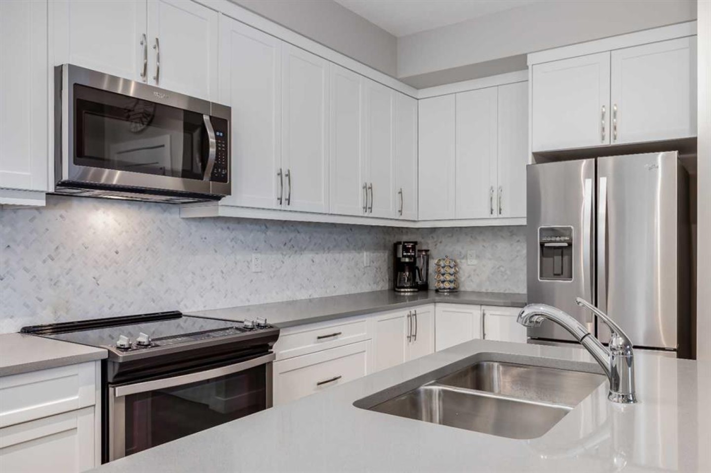 Both bedrooms are a great size and are separated by the living space to allow for privacy. The primary bedroom has a walk-in closet leading to a 4 piece ensuite complete with double sinks and quartz countertops. Both bedrooms offer park like views. In-suite storage provides added functionality—ideal for a freezer, sports gear, or seasonal items.