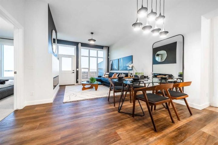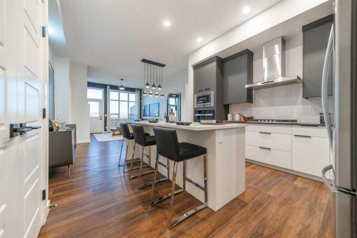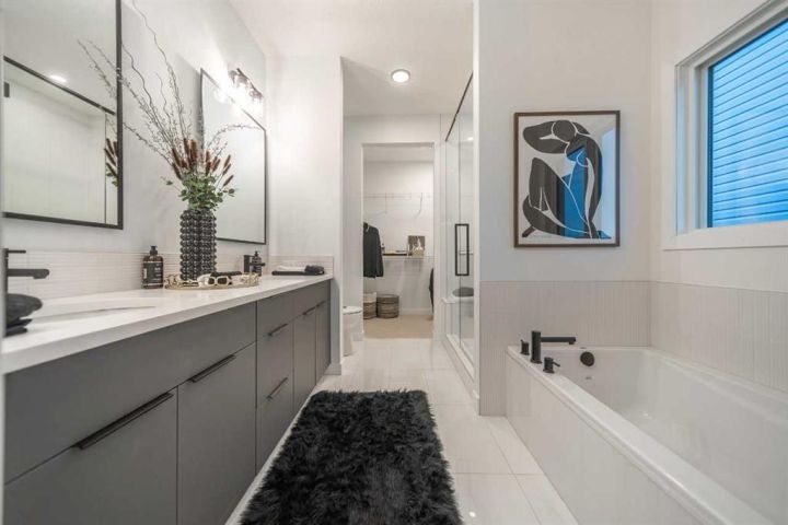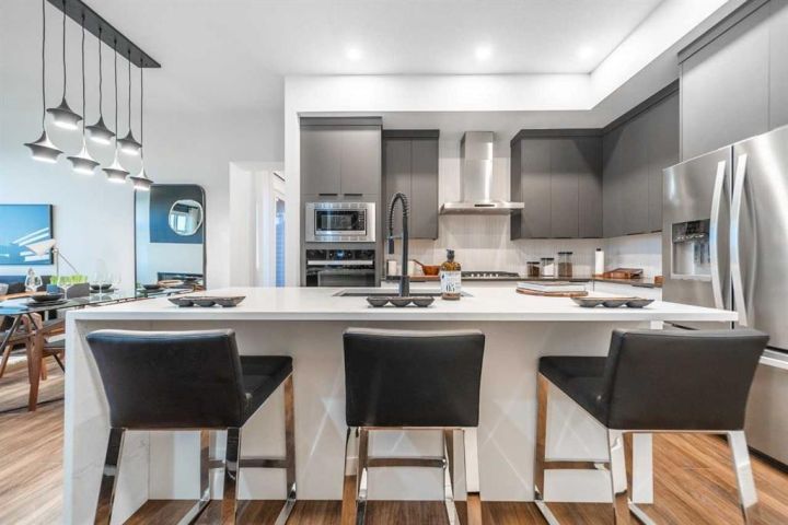 This home showcases on-trend, designer-curated interior selections tailored for a home that feels personalized to you. Energy efficient and smart home features. A beautifully upgraded home backing onto tranquil greenspace. This stunning property features an executive kitchen with built-in stainless steel appliances, gas cooktop, fridge with water and ice, a waterfall island with waste-bin pullout and a pantry with MDF shelving. Enjoy 10' ceilings in main living areas, LVP flooring, a main floor flex room, and an electric fireplace with mantle. The primary bedroom offers wall detail, MDF shelving in the WIC, and a 5-piece ensuite with tiled walk-in shower, tile flooring, barn door, and a bank of drawers. With additional windows, black hardware, a developed stairwell, 9' basement ceilings, and a rear deck with BBQ gasline rough-in, this home blends luxury and comfort. This energy-efficient home is Built Green certified and includes triple-pane windows, a high-efficiency furnace, and a solar chase for a solar-ready setup. With blower door testing that may be eligible for up to 25% mortgage insurance savings, plus an electric car charger rough-in, it’s designed for sustainable, future-forward living. Featuring smart home technology, this home includes a programmable thermostat, ring camera doorbell, smart front door lock, smart and motion-activated switches—all seamlessly controlled via an Amazon Alexa touchscreen hub. Photos are a representative.