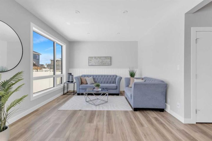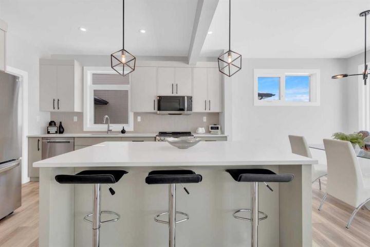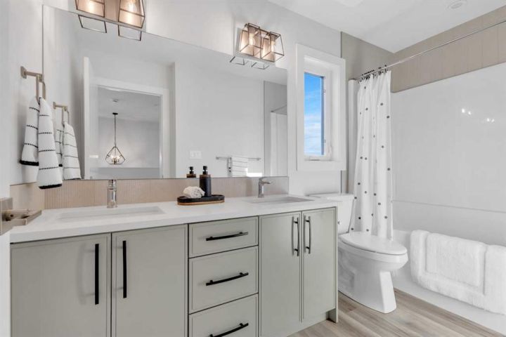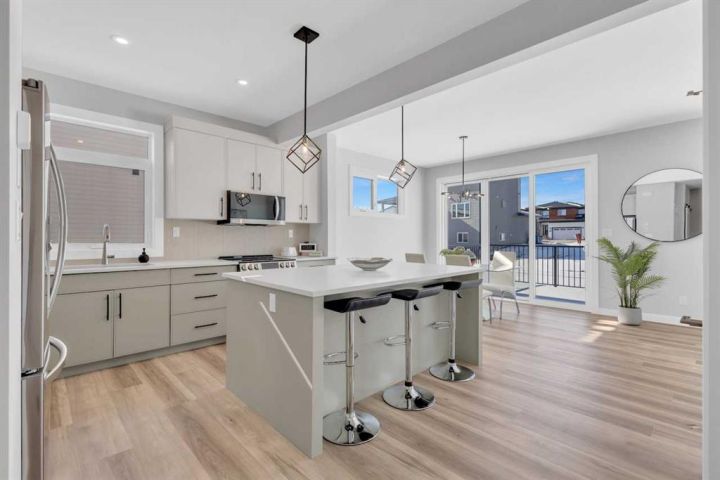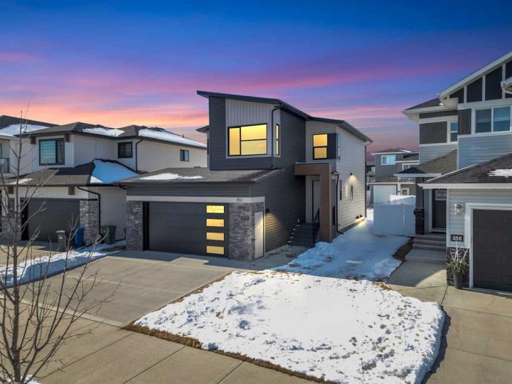 Modern Family Living in Evergreen – 252 Emerald Drive, Red Deer. Welcome to this beautifully crafted 3-bedroom, 2.5-bath home by Mason Martin Homes, located in the heart of Evergreen — one of Red Deer’s most sought-after communities. With 1,740 sq. ft. of thoughtfully designed living space, this home offers the perfect blend of comfort, style, and practicality for growing families. The main floor features an open-concept layout anchored by a warm, earthy-toned kitchen complete with a Concretto Quartz island, walk-through pantry, stainless steel appliances, and full-height tile backsplash. Oversized windows throughout the home invite in abundant natural light, enhancing the calm, welcoming feel of each space. 8-foot patio doors off the dining area lead to a generous backyard and spacious deck — ideal for entertaining or simply enjoying the outdoors. Accompanied with back-lane access. Upstairs, the layout includes a serene primary bedroom with a private ensuite, two additional bedrooms, a flexible den/flex area, and convenient second-floor laundry — perfect for busy households. Directly across from a tranquil wildlife reserve and pond, and surrounded by picturesque walking paths, this home offers a peaceful, nature-connected setting just minutes from all the essentials. Additional highlights include: • Oversized 25x23 attached garage with tall ceilings and added workshop space • Unfinished basement with 9’ ceilings — a bright, open canvas ready for your future development plans • Premium finishes including quartz countertops and vinyl plank flooring • Double vanities in upstairs bathrooms with modern fixtures • Strong curb appeal with stone accents and contemporary architectural details • Quiet street in a family-friendly neighborhood A perfect blend of thoughtful design and everyday comfort — this is a home you’ll love for years to come.