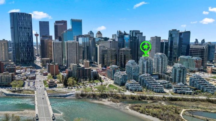 ***Freshly Painted*** Are you an urban professional who walks to work? With a Walk Score of 96, the condos at WATERFRONT are tailored for your lifestyle. This bright, south-west-facing CORNER UNIT in the sought-after 'A' Tower (East) features 2 bedrooms and 2 bathrooms, and is move-in-ready. Modern, upscale finishes include stainless steel appliances with a gas cooktop, integrated fridge, New dishwasher, quartz countertops, a pantry, wide-plank hardwood flooring, soft-close custom cabinetry, a gas fireplace, Grohe plumbing fixtures, and 9-foot ceilings. Enjoy outdoor living on the large, covered balcony equipped with a gas BBQ hookup. Also included are an oversized underground parking stall (P3) and a storage locker on the 3rd floor. WATERFRONT offers exceptional amenities: 24/7 concierge and security, guest suite, owners’ lounge with kitchen and pool table, screening room, fully equipped fitness and yoga studio, hot tub, car wash bay (P4), and secure bike storage. Convenient retail services—including a coffee shop, wine store, and hair salon—are located right on the main level. Plus, you're just minutes from Bow River Pathways and Prince’s Island Park. Explore the Virtual Video Tour on YouTube by searching MLS® # A2272721. The lowest-priced condo in this complex, call to book a private viewing today.
