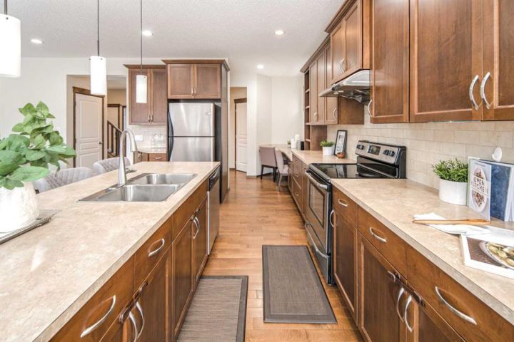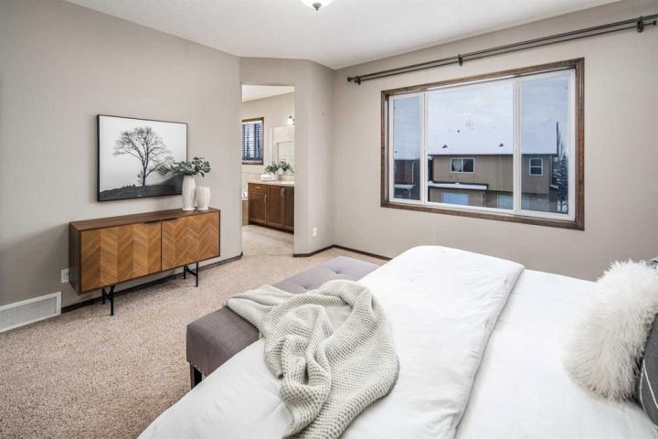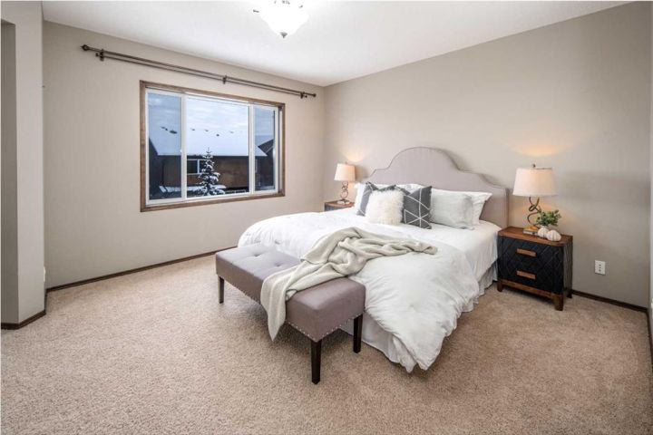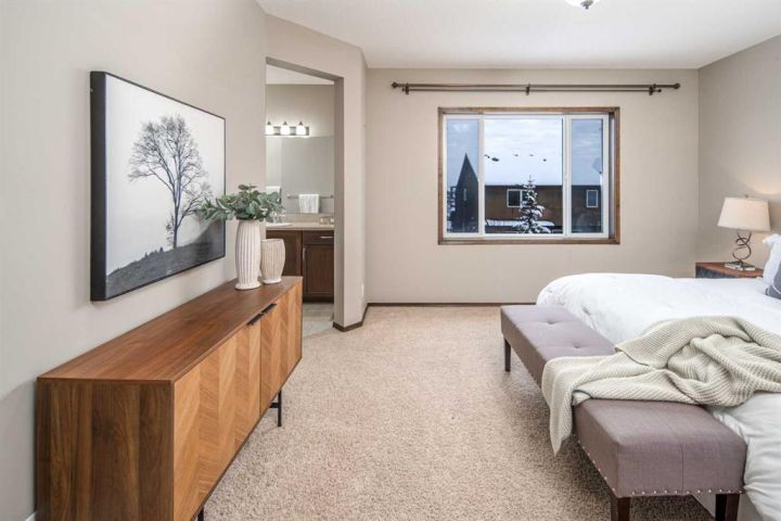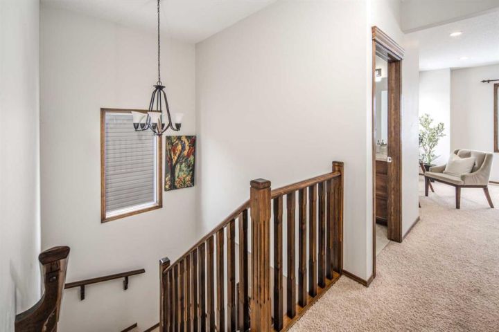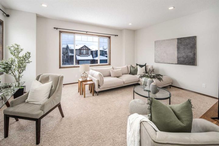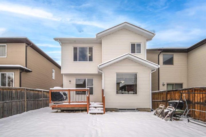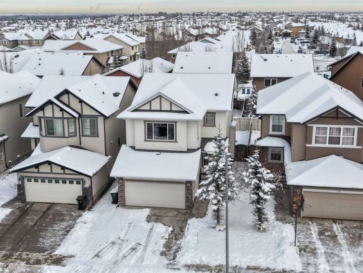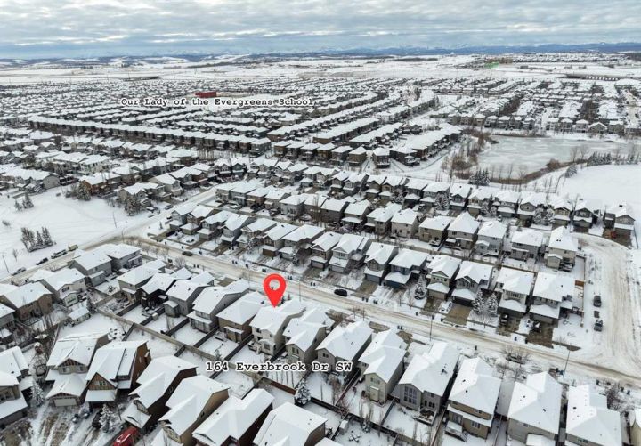 Welcome to this beautiful 3-bedroom, 2.5-bathroom home tucked away on a quiet street in the highly sought-after community of Evergreen. Pride of ownership is unmistakable from the moment you arrive, with impressive curb appeal enhanced by a new roof and complete exterior siding replacement (2021). Inside, a grand front foyer welcomes you with gleaming maple hardwood floors and flush-mount vents. The expansive chef’s kitchen is a true showpiece, showcasing rich maple cabinetry, stainless steel appliances, a timeless tile backsplash, a walk-through pantry, and an oversized central island perfect for cooking, entertaining, and gathering. Connected to the kitchen, the spacious living room features a gas fireplace with a contemporary mantel and tile surround, while the bright dining nook and living area are framed by large windows that fill the space with natural light. main floor highlights include a private half bath, a convenient laundry area, and a fully insulated and double garage. Both the main floor and second level feature rare 9-ft ceilings, adding to the home's open and airy feel. Upstairs, two generous secondary bedrooms share a full 4-piece bathroom, while the substantial bonus room is ideal for family movie nights or a cozy lounge space. The serene primary suite overlooks the lush backyard and features a spa-inspired ensuite with a luxurious soaker tub, separate tiled shower, and a walk-in closet with custom built-ins. The lower level is undeveloped and ready for your personal touch. Ideally located just steps from greenspace, an elementary school, and Fish Creek Park, and only minutes from Costco, shopping, and the ring road, this home perfectly blends style, comfort, and convenience.