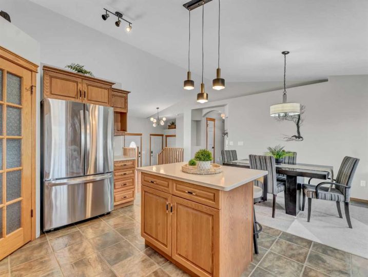 LOCATION LOCATION!! BEAUTIFUL 1427 SQ FT BUNGALOW WITH 4 BEDROOMS (2+2), 3 BATHS, A “GORGEOUS” BACKYARD (FRESHLY LANDSCAPED) AND RV PARKING!! Located on a “quiet court” in SE SOUTHRIDGE, this beautiful brick and stucco bungalow shows 10/10! The main floor features VAULTED CEILINGS with an open concept as well as a 2 bedrooms, 2 baths and MAIN FLOOR LAUNDRY! The spacious living room, kitchen and dining are perfect for entertaining family and friends 🙂 Some of the kitchen highlights are new quartz countertops,new backsplash plus new fridge and stove! The living room , hallway and bedrooms boast hardwood floors that are in pristine shape and there are new light fixtures throughout the home! Downstairs is host 9’ ceilings, 2 more nice sized bedrooms, a lovely 3 piece bath and a HUGE FAMILY ROOM with gas fireplace and enough space to add a 5th bedroom if needed! Come winter, spring summer or fall, you’ll love this backyard oasis that was freshly landscaped and has maintenance free fencing and UGS’S. You’ll want to spend many summer nights enjoying the beautiful backyard from your maintenance free, covered deck, with a gasline for the BBQ. Did we mention the 24x26 heated garage that was freshly painted and has new cabinets (that are included) Another BONUS is the home has SOLAR PANELS & the UTILITIES are SIGNIFICANTLY LOWER!! Seller watered the grass a ton, had the A/C on all the time and September bill was ONLY $163.95!! This well cared home that’s close to numerous schools and parks wont last long! Call today 🙂 !