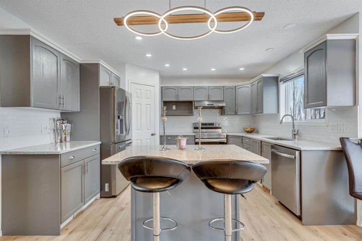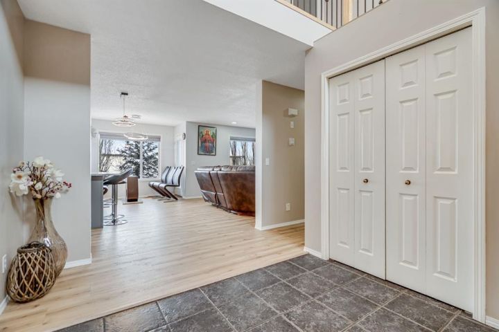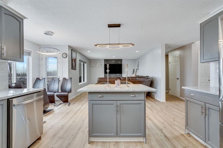 Live in Chestermere and enjoy the lake lifestyle. This update home is a rare find. Situated on a quiet street with a 2 bedroom legal basement suite! As you enter you will notice the grand front foyer with an open to above. The kitchen is a focal point with updated cabinets, gorgeous quartz counters, timeless subway tile backsplash, stainless steel appliances, a large corner pantry for additional storage, and a sink overlooking your backyard with mature trees. Adjacent to the kitchen is the bright dinning room with access to your sunny deck. The spacious living room features a gas fireplace with a tile detail. A large front den, could be used as a former dinning room, play area, or home office. The powder room with stone counters is tucked away and conveniently located next to the laundry space and mudroom. As you head upstairs you will notice the timeless railing and large windows drawing in the natural light. The expansive primary includes a walk in closet, 4 pc ensuite with a separate shower and water closet. In addition to this there are 2 well sized bedrooms, and a 4pc main bath. The suited walkout basement has large windows, an updated 3 pc bath, separate laundry space, kitchen with modern cabinets and 2 additional bedrooms. The suite has its own separate entrance and a large outdoor patio space. This property is a rare find and includes new windows, an instant hot water tank among many other updates. Ideally located within a quick 5-minute walk to Chestermere’s private beach, scenic walking paths, and local hot spots like Dockside Bar & Grill. Within minutes of Prairie Waters Elementary, Chestermere Lake Middle School, and a short 10-minute drive to East Hills Shopping Centre, Costco, and Walmart. You’re also just 10 minutes from Calgary city limits and 30 minutes from downtown. Schedule your private showing today or view the virtual tour!