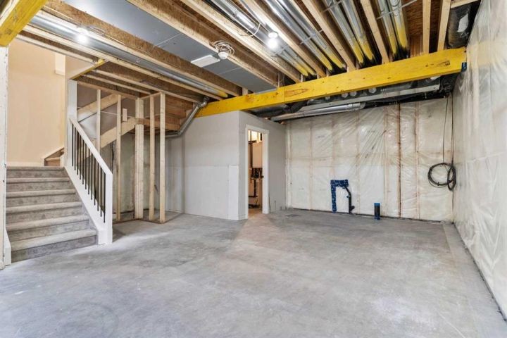 Additional upgrades include 9-foot ceilings and 8-foot doors on the main floor, black spindle railings, black hardware and designer lighting throughout, oversized triple-pane windows, built-in MDF shelving, finished stairs to the basement, a closed-off mechanical room, gas line for BBQ hookup, and rough-in for solar panels.