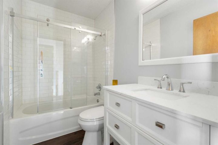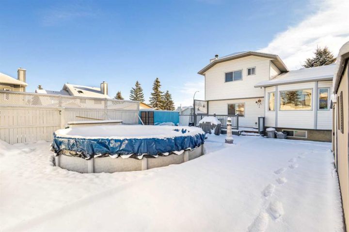 Discover this well-maintained detached home on a quiet street in Monterey Park. This charming 3-level split offers over 2,300 sq ft of thoughtfully designed living space, complete with 4 bedrooms, 2.5 baths, and a double attached garage. The main floor welcomes you with beautiful hardwood flooring and a bright, spacious living room highlighted by large south-facing windows. The kitchen impresses with warm wood cabinetry, quartz countertops, and a cozy breakfast nook framed by expansive windows. Just steps away, the inviting family room features a wood-burning fireplace, perfect for relaxed evenings at home. Upstairs, you’ll find three generously sized bedrooms, including the primary retreat with a walk-in closet and a private 3-piece ensuite. The fully finished basement adds even more versatility, offering a large recreation room and a fourth bedroom - ideal for guests, teens, or a home office. This home is poly-b free, providing added peace of mind. Step outside to your own private oasis that includes a large deck and a 4.5-ft deep heated pool with a chlorine dispenser, ready for summer fun and memorable gatherings. The double attached garage pairs with a large driveway, offering ample parking for multiple vehicles. Situated close to schools, playgrounds, shopping, and dining, this property delivers exceptional comfort and convenience in a welcoming, family-friendly neighbourhood. Don’t miss your opportunity to make this wonderful home yours, book your private showing today
