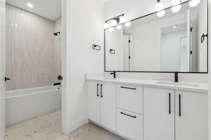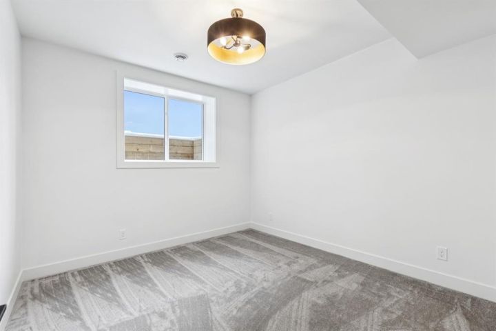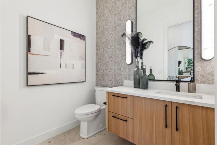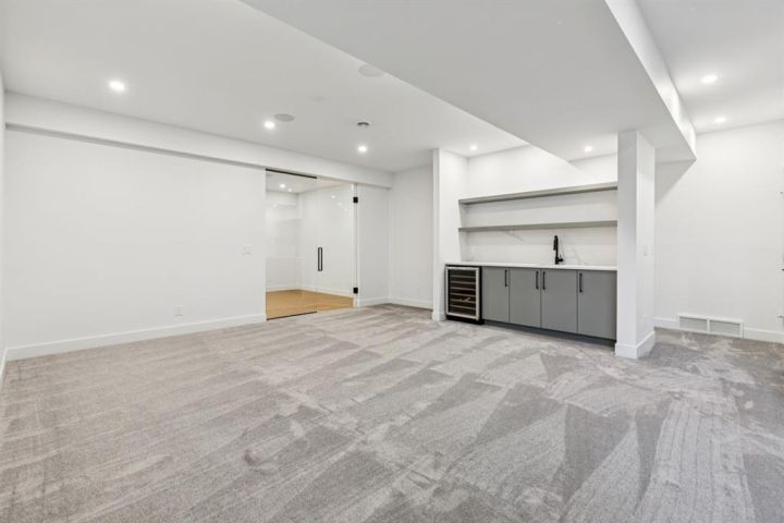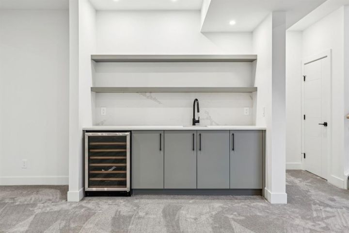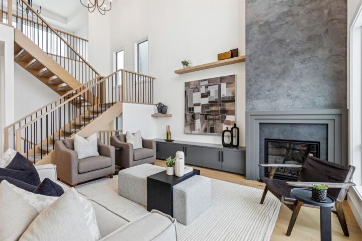 Welcome to this luxury modern residence by A|K Design & Development, perfectly situated in a premier cul-de-sac surrounded by high-end homes in prestigious Elveden Park. Offering over 3,300 sq ft above grade, this contemporary masterpiece delivers timeless design, upscale finishes, and exceptional functionality. The grand open-concept main floor features a dramatic open-to-below living room with custom built-ins and a striking plaster fireplace. The gourmet kitchen is the centrepiece of the home, showcasing a large quartz island, designer gold range hood, high-end JennAir appliances, and a walk-through pantry with direct access to the heated triple attached garage. An exceptional mudroom with built-in lockers and a full closet provides outstanding everyday convenience. A dedicated main-floor office and elegant design details complete the level. An impressive open-rise staircase leads to the upper floor, where a spacious bonus room anchors the family space. The luxurious primary retreat is designed to impress with a tray ceiling, private lounge area, and an oversized walk-in closet. The spa-inspired ensuite offers double vanities, a large walk-in shower, a soaker tub, and designer feature walls—creating a serene sanctuary for relaxation. Two additional bedrooms, each with its own walk-in closet, share a beautifully appointed bathroom with double vanities. The fully developed basement is crafted for entertainment and wellness, featuring a large family room with built-ins and theatre wiring, a rec area, a stylish wet bar with wine cooler, and a separate gym with a full mirrored wall. Zoned heated floors add comfort throughout. Additional highlights include: heated triple attached garage, smart-home readiness, rough-ins for A/C, Vacuflo, and an alarm system. A rare opportunity to own a luxury home in one of Calgary’s most exclusive neighbourhoods, surrounded by parks, top-rated schools, and upscale amenities.