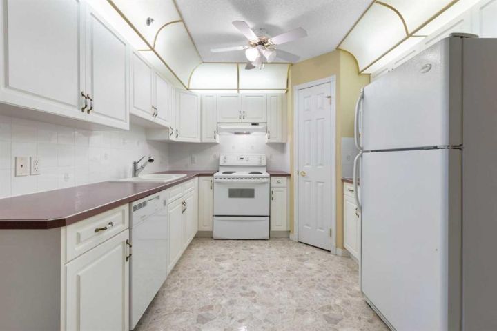 Welcome to Sierras West I in Signal Hill, a highly sought-after 40+ adult community where comfort and lifestyle come together. This beautifully maintained 1,013 sq. ft. top-floor condo features knockdown vaulted ceilings, abundant natural light, and a thoughtfully designed layout with 2 bedrooms, 2 bathrooms, and a bright south-facing enclosed sunroom for year-round enjoyment. A spacious foyer with a double mirrored closet leads into the heart of the home. The kitchen offers a ceramic tile backsplash, white appliances, a pantry, and plenty of cabinetry, opening seamlessly to the dining area and a large living room with a cozy corner gas fireplace. The primary suite is generously sized with a walk-in closet, a 4-piece ensuite, and soft carpet flooring. The second bedroom with laminate flooring works well as either a guest room or home office. A laundry room with built-in shelving and a 3-piece bathroom complete the floor plan. Additional features include air conditioning in livingroom, TWO underground parking stalls, and TWO storage lockers. Condo fees conveniently cover all utilities. Sierras West I offers outstanding amenities including an indoor pool and hot tub, fitness centre, billiards, woodworking shop, party rooms, a car wash bay, and guest suites. Residents also enjoy a welcoming sense of community while staying close to everything, from Westhills Shopping Centre and Cineplex Cinemas to restaurants, parks, walking paths, and Griffith Woods Park. This is a rare opportunity to own a bright and spacious home in one of Signal Hill’s most desirable communities.