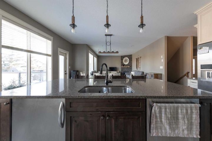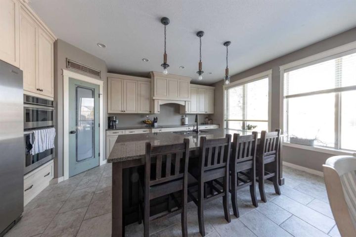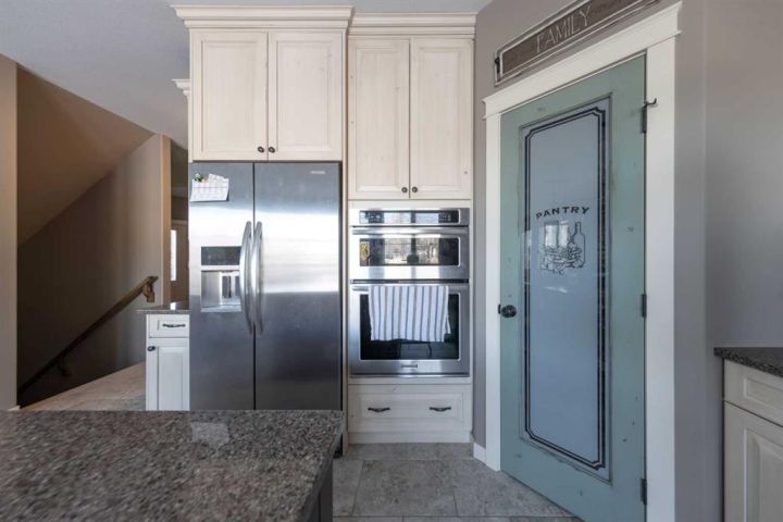 The main floor was freshly painted in 2024 and offers a bright, welcoming feel. The dedicated office features custom built-in cabinetry—perfect for working from home or keeping household organization on track. The kitchen includes a walk-through pantry, a garburator at the sink, and opens comfortably into the main living area for easy everyday flow.