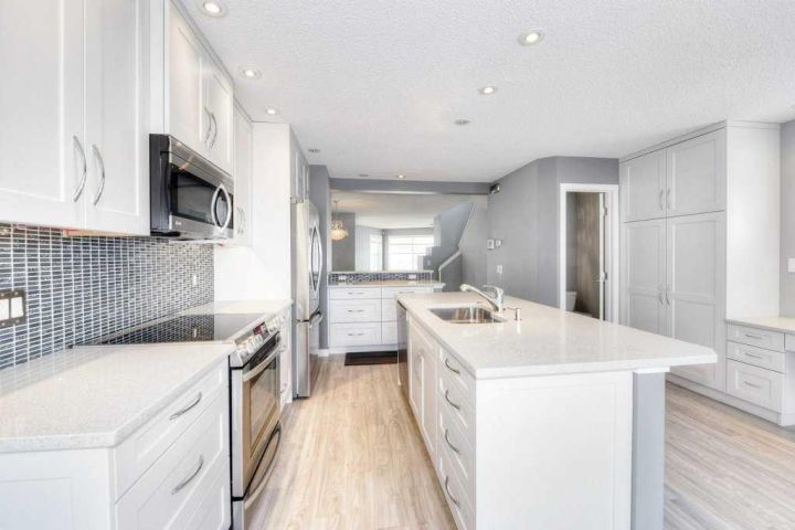 Located just minutes from Marda Loop, this updated single-family 2-storey infill features a double detached garage. Step into a spacious, tiled front entry and a main floor renovated in 2013, offering updated flooring throughout. At the front of the home is a warm, sunlit living room with a wood-burning fireplace. Moving through, you’ll find a large dining area adjacent to an updated kitchen with a generous central island with a deep sink, extensive cabinetry, a quality LG stainless-steel appliance package, and a Bosch dishwasher. At the rear of the home is a spacious nook and a door leading to an expansive deck with stairs down to the yard. A stylish, updated 2-piece bath completes the main floor.
