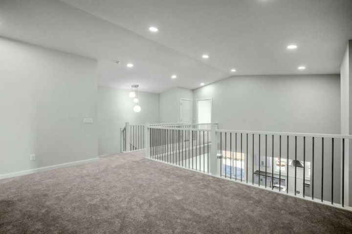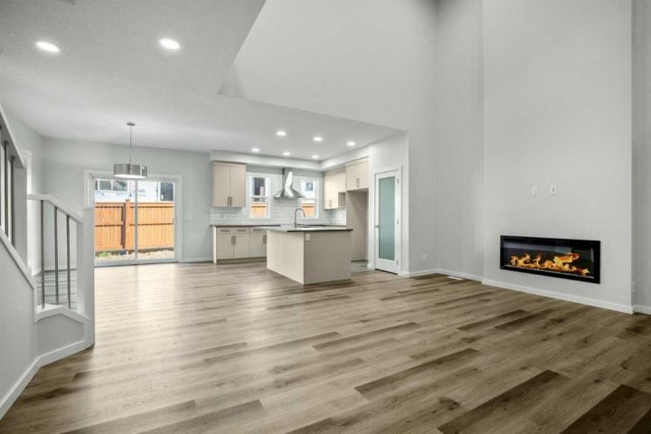 Open concept main floor allows for a spacious L-shaped kitchen at the back of the house that comes with 41" soft close upper cabinets and a rough-in for a chimney hood fan. Every Bedrock Home comes complete with a modern smart home technology system (Smart Home Hub), Ecobee thermostat, Ring video doorbell & Weiser Halo Wi-Fi Smart keyless lock with touch screen. Side entry is added for, the basement ceilings are upgraded to 9'. Upgraded Spindle railing on the stairs and upper hall creates an open feel from main floor to upper level. Built with a 4-piece ensuite with upgraded walk-in shower and dual sinks. Double compartment stainless steel undermount kitchen sink, complete with a chrome finish faucet with pull down sprayer, and 1.5gpm aerator. 50" Linear Ortech LED electric fireplace. All LED disc lights were upgraded to 5000k white light. Photos representative.