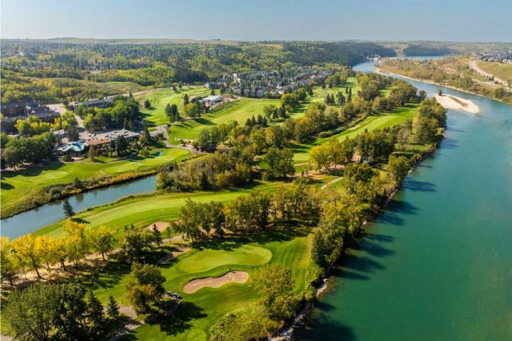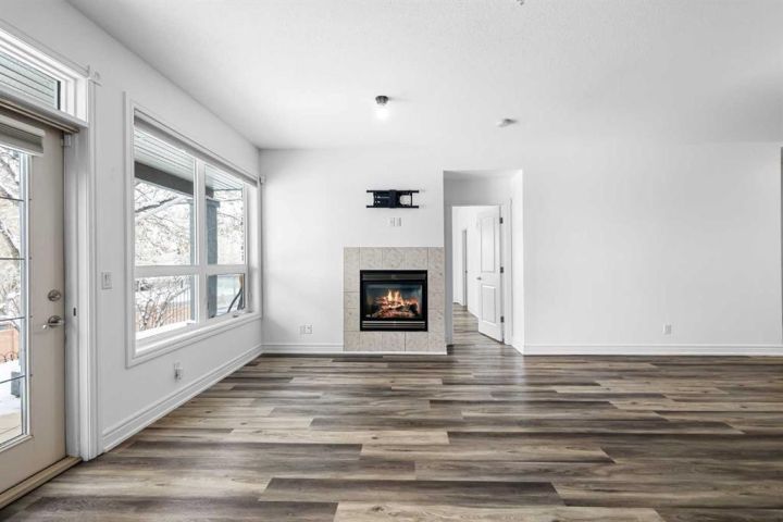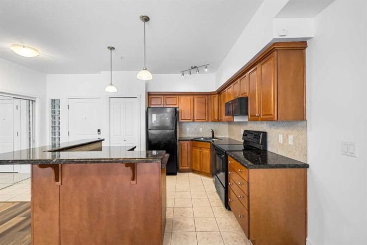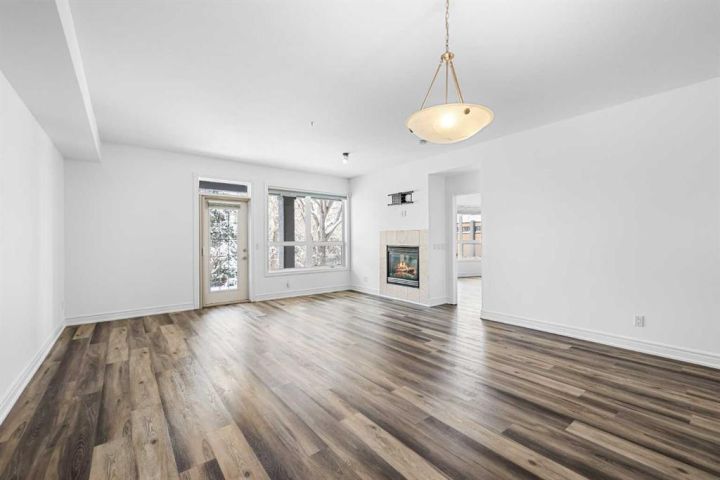 Nestled in a serene, natural setting, this beautifully appointed one-bedroom condo offers the perfect blend of modern convenience and outdoor tranquility. Located in a sought-after NW community, the property backs onto the Valley Ridge Golf Course, providing views right from your private living space. Heated by an in floor heat system you will always be at that perfect ambient temperature. Large windows frame picturesque vistas of the rolling hills and mature trees, this home offers a peaceful retreat where nature is always just a step away. Inside, you'll find an open-concept living and dining area, designed to maximize space and light. The living room features large windows that invite the outdoors in, creating a bright and airy atmosphere. The modern kitchen is equipped with stainless steel appliances, oversized island, sleek countertops, and plenty of storage, making it a perfect space for both entertaining and everyday cooking. This main floor unit walks directly out onto your own private patio that spans across the unit providing tons of personal outdoor living space. The spacious bedroom provides a comfortable haven, with ample closet space and more of those views of the golf course and surrounding greenery. The ensuite is stylishly designed, offering a clean, contemporary feel with all the amenities you'd expect for ultimate relaxation. There is a flex room that has been used as an office with builtins, and shares a space with in-suite laundry making laundry day a breeze without the need to leave the comfort of your home. This unit also comes with two underground heated parking stalls, ensuring you'll never have to worry about parking, no matter the weather, as well as a separate storage locker to keep your seasonal items, sporting equipment, and extra belongings neatly tucked away. The complex is surrounded by nature trails and pathways, perfect for outdoor enthusiasts who enjoy hiking, biking, or simply strolling through the scenic surroundings. The Valley Ridge Golf Course offers a stunning backdrop, with beautifully manicured fairways and a peaceful atmosphere, making this condo an ideal location for those who appreciate a connection to nature without sacrificing the conveniences of urban living. Whether you're relaxing in the comfort of your own home or exploring the outdoors, this condo offers the best of both worlds—privacy, convenience, and an unparalleled connection to the beauty of nature. It’s a perfect place for anyone seeking a peaceful and modern living space with easy access to outdoor recreation and stunning views.