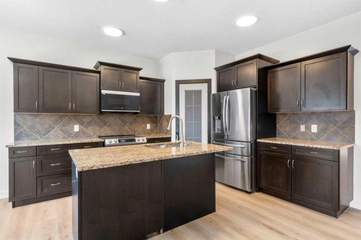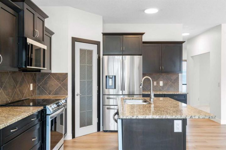 | FULLY RENOVATED | 3 BED & 2.5 BATH | BONUS ROOM & OFFICE | DOUBLE GARAGE | Welcome to this beautifully renovated home in the highly sought-after community of Williamstown in NW Airdrie—where comfort, style, and convenience come together effortlessly. Thoughtfully updated throughout, this property showcases high-end upgrades including new appliances, premium vinyl plank flooring, 40oz carpet, fresh paint, updated baseboards and trims, and more. Set in a vibrant, family-friendly neighbourhood, Williamstown offers unmatched walkability to parks, scenic pathways, peaceful ponds, the Nose Creek Preserve, and multiple amenities. A charming southwest-facing front porch sets the tone—perfect for morning coffees and relaxed evenings. Step inside to a private foyer with a coat closet, leading into a bright, open-concept main floor bathed in natural light. Newly installed flooring, a soft neutral colour palette, and large windows create a welcoming and airy feel throughout the year. A versatile office off the main living area doubles as a family room or den, offering flexibility for any lifestyle. The spacious living room features a rare gas fireplace and views of the backyard. The kitchen—designed for both everyday living and entertaining—includes granite countertops, white steel appliances, a large island, dark cabinetry, upgraded pot lighting, and a pantry for added storage. The adjacent dining area is surrounded by picturesque windows, offering an inviting space for meals or gatherings. Down the hall is a discreet powder room combined with the laundry area, along with a well-designed mudroom that connects directly to the oversized double garage, complete with epoxy flooring and LED lighting. Upstairs, the new plush carpeting ties the space together beautifully. The east wing features a massive bonus room with three large front-facing windows—ideal for an entertainment setup. The west wing hosts the spacious primary suite with a walk-in closet and a luxurious 4-piece ensuite. Two additional bedrooms and a second full bathroom complete the upper level. The undeveloped basement provides a blank canvas, equipped with bathroom rough-ins and a large egress window, ready for your future vision. Outside, the generous backyard is primed for summer enjoyment with a large deck perfect for BBQs and gatherings. You're steps from Herons Secondary School, moments from shopping centres, and just a quick hop to local transit and QE2—making daily errands and commuting a breeze. This exceptional home delivers the perfect blend of lifestyle, location, luxury and is truly the BEST VALUE in Airdrie. Don’t miss your chance—book your private showing today.