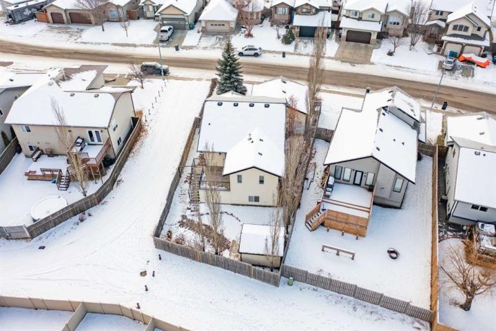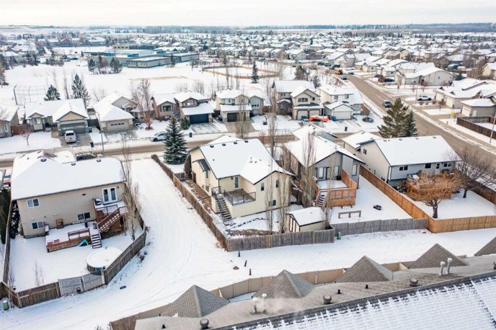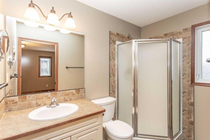 Immaculate bi-level home fully finished from top to bottom with every space maximized for function. Located in a family friendly community with quick access to schools, parks plus shopping amenities. Professionally landscaped not only for lovely curb appeal but also offers a low maintenance lifestyle. The welcoming front entrance offers plenty of space to greet guests in style but also provides room for boots,bags and everyday flow. Enjoy the sun filled living space enhanced by vaulted ceilings for a spacious, uplifting feel. Timeless antique white cabinets elevate the kitchen, which opens beautifully to the dining area for an elegant, cohesive space. Kitchen is also complimented with a raised eating bar, wrap around counter space, pantry closet plus an upgraded insert gas stove. Generous main bathroom offers a large full length vanity with storage cupboards and drawers. Primary bedroom is roomy enough for a King size bed, dual closets for all your attire plus your own private three piece en suite for added comfort. Additional main floor bedroom is great for guest or even a nice studio/office space for yourself. Head down to the finished basement and find a large yet cozy family room where everyone can relax, play or spend quality time together. Two additional bedrooms ideal for extended family over the holidays or for the independent teens looking for their own sanctuary. Basement bath is also enhanced with a roomy walk in shower great for limited mobility plus large vanity as well. Enjoy the comforts of the under floor heat during these colder months ahead but also relish in the summer with the AC once the warm weather hits. Other upgrades were newer shingles approx 7-8 years ago, updated furnace, both Hot Water tanks have been replaced plus a Ecowater conditioning system installed. The attached garage with in floor heat is especially appreciated this time of year with evaporation pit for snow melt. A nice size back patio offers a gas line for the bbq plus additional closed storage underneath excellent for the patio furniture. The well placed columnar trees give added privacy to the back yard plus the additional features of a small RV parking area, dog run plus the extra garden storage shed add to the value experience of the yard. Make this house your home for the holidays.
