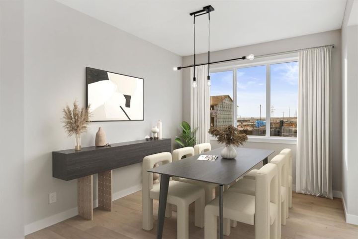 *Photos are representative - some finishes may vary* You'll love the large open kitchen with a huge quartz topped island- perfect for busy mornings, casual family meals, and hosting friends. 9-foot ceilings and large windows flood the space with natural light. Durable engineered hardwood and modern finishes ensure this home looks stylish today and for years to come. Upstairs, the primary suite with walk-in closet and ensuite provides a private retreat, while two additional bedrooms adapt as your family grows- whether you need space for kids, guests, or a home office. Upstairs you'll also find a laundry closet, conveniently located near the bedrooms. With a detached double garage, no condo fees, and the peace of mind that comes with new-home warranty protection, this home is built with your future in mind. Located with quick access to Deerfoot and Stoney Trail, commuting and zipping around the city is a breeze. Surrounded by wetlands, pathways, and green space, Sora blends the calm of nature with easy access to the conveniences homeowners need. *** The First-Time Home Buyers' GST Rebate could save you up to $50,000 on a new home! You must be 18+, a Canadian citizen or permanent resident, and haven't owned or lived in a home you or your spouse/common-law partner owned in the last four years. Terms and conditions are subject to the Government of Canada/CRA rules and guidelines.***