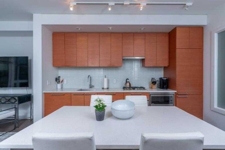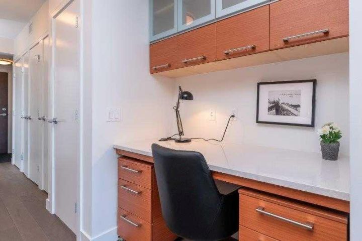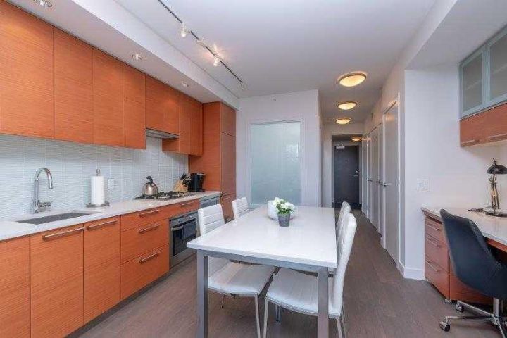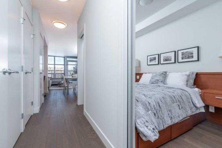 This executive condo is one of the best units to hit the market in the Waterfront in years. Perfectly positioned in a PRIME COURTYARD LOCATION , this unit showcases a spectacular 250 SQ.FT private OUTDOOR PATIO — an entertainer’s dream and a standout feature RARELY AVAILABLE in the building. Inside, the home offers a beautifully upgraded interior designed for modern urban living. The kitchen features stainless steel appliances, a gas cooktop, QUARTZ countertops, and integrated panel-front refrigerator and dishwasher. The open dining area includes a custom quartz dining table, flowing seamlessly into the bright and spacious living room with large windows overlooking the courtyard. The primary bedroom includes a BUILT-IN bedroom suite, and the spacious bathroom offers an oversized walk-in shower. A quartz-finished home management centre provides the perfect workspace or tech station, and the convenience of in-suite laundry adds to the comfort. NEW VINYL PLANK FLOORS throughout and AIR CONDITIONING for the summer months! Additional features include a HEATED UNDERGROUND parking stall and SECURE same-floor STORAGE (2nd floor, not in the parkade), offering convenience and peace of mind.