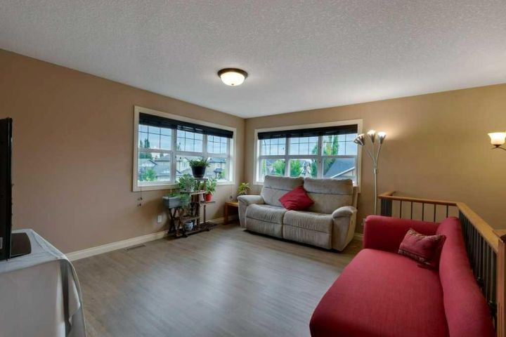 This family home is roomy, offers a relaxing vibe, and is ready for you to move right in! You will enjoy stretching out in all the spacious rooms of this FULLY DEVELOPED HOME. Upon entering you will be welcomed by a spacious entrance that leads into the main living space with 9 FOOT ceilings and HARDWOOD FLOORS. MAPLE CABINETRY, an expansive island, plenty of cabinetry and large pantry make for a very functional kitchen. The dining area leads out to a lovely backyard offering a deck with GAS LINE, shed and GREENHOUSE. Unwind in the family room with loads of windows and fireplace. 1/2 bath and laundry room complete the main level. NEWER COMMERCIAL GRADE VINYL PLANT takes you upstairs to a great layout including a bonus room and 3 bedrooms. The spacious primary bedroom overlooks the backyard and has a spa like 5 pc ensuite with UPGRADED STEAM SHOWER and walk-in closet. The fully finished basement has in-floor heat, a good-sized family room another spacious bedroom and a 3 pc bathroom. The owners have taken care of all the big-ticket items, including a NEW ROOF 2022, NEW FURNACE IN 2024 and the HOT WATER TANK IN 2022 plus the addition of OmniShield Home Safe Network will give you great peace of mind. This Cimarron home is well located close to schools, parks and pathways and lots of amenities. Come view this wonderful home that is sure to check all the boxes!