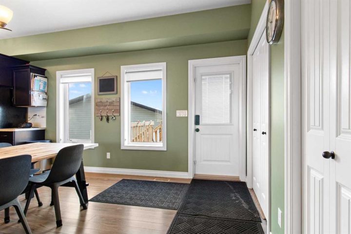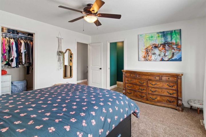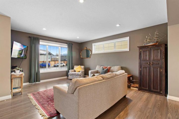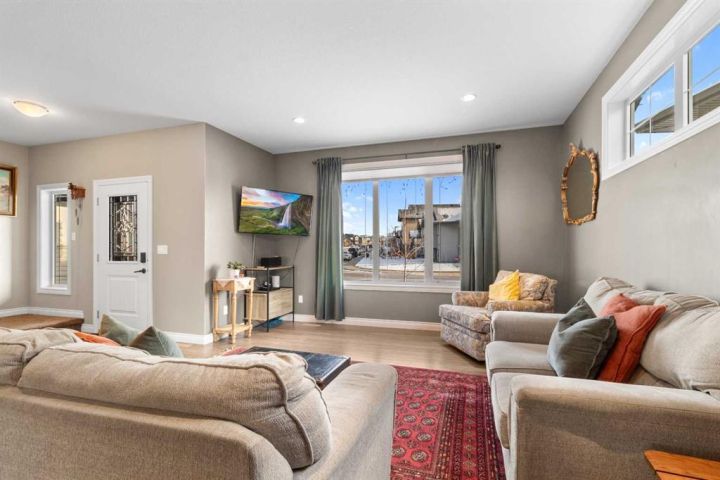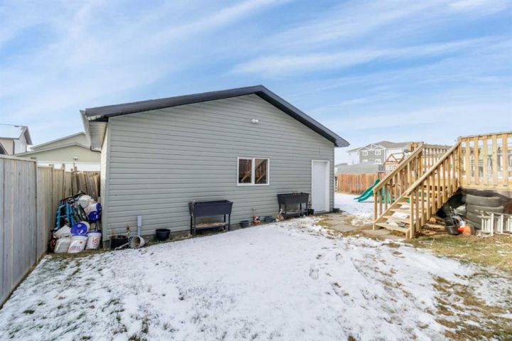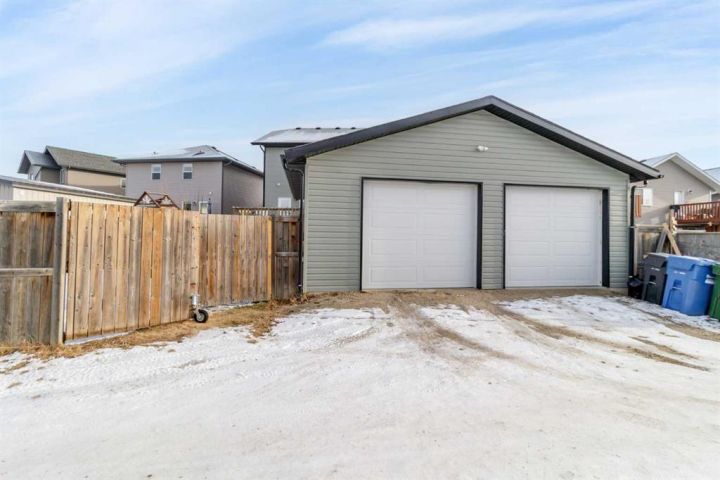 Welcome to this 5 bedroom, 3 1/2 bath two-storey home with a bright, open concept layout and plenty of functional upgrades. The main floor has an open living, kitchen & dining area with large windows that keep the space bright. Upstairs you’ll find three bedrooms, including the primary with en-suite, along with conveniently located laundry. The basement adds two additional bedrooms, a rec room, and new in-floor heating for year-round comfort. Recent updates include a new humidifier on the furnace and a new double gate at the back, offering easy access for RV parking. Outside, enjoy the large yard and the newly built double detached garage, equipped with 100 amp/220V service, a gas line, and currently heated with an electric heater. This home is located in a family-friendly neighbourhood within walking distance of a pond and walking paths, with schools and other amenities close by.