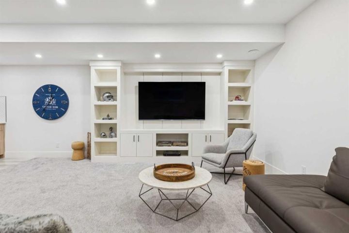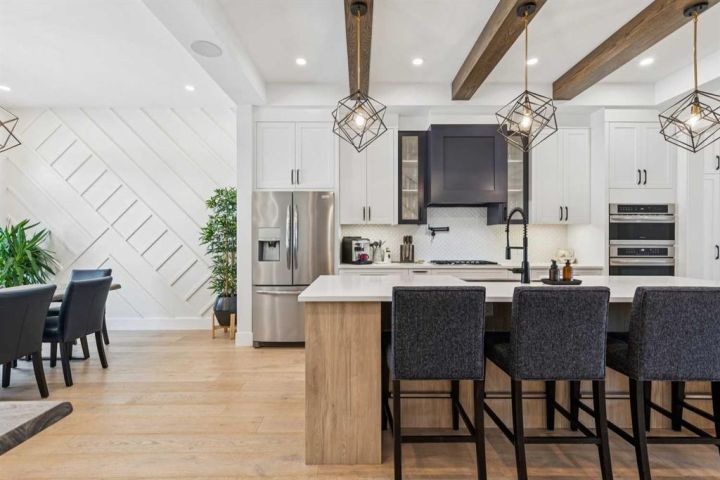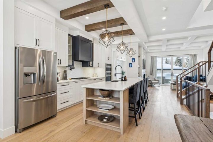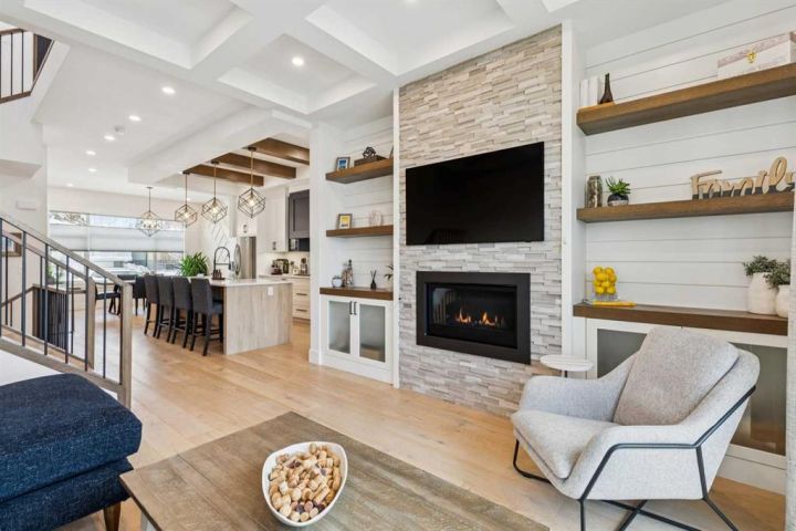 Welcome to 2835 42 ST SW, a spectacular custom-designed infill brimming with high-end finishes and thoughtful custom details. The moment you step inside, you’ll fall in love with the expansive sun-soaked windows and soaring 10-foot detailed ceilings. The heart of the home is the gourmet chef’s kitchen, a showstopper anchored by an oversized central island. It features a modern apron sink, timeless custom cabinetry, beautiful backsplash complete with a built-in pot filler, a custom crafted hood fan, and a premium appliance package—a truly exceptional space ready for any gathering. The spacious living room is highlighted by an eye-catching gas fireplace flanked by custom built-ins and seamlessly flows out onto the incredible west-facing backyard entertaining space. A large dining area, a thoughtfully curated mudroom, and a stylish powder room complete this meticulously designed main level.