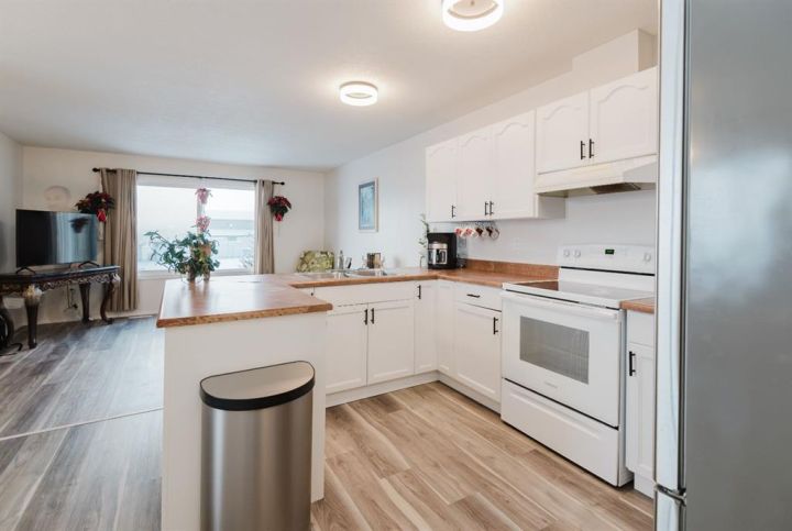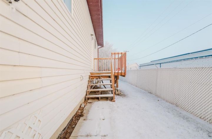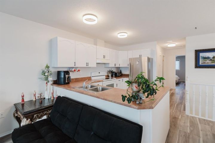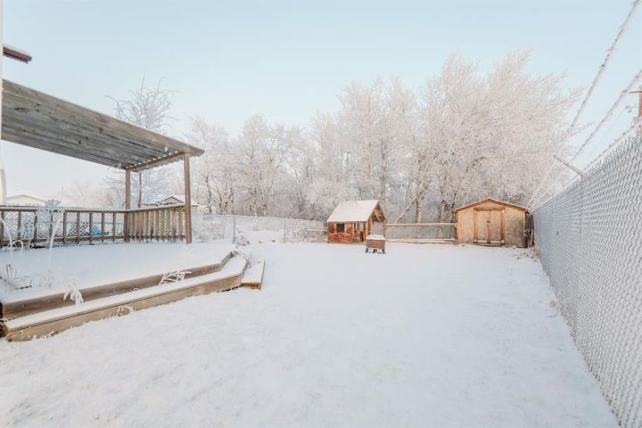 Discover this well maintained duplex, perfectly situated in the vibrant town of Sexsmith! Offering a bright, open-concept floor plan, this home is designed for modern family living in a community known for its rich history and small-town charm. You'll love the updated kitchen which provides ample workspace and flows seamlessly into a dedicated dining area, making it ideal for both everyday meals or visiting with friends. The main floor has new vinyl plank flooring throughout and new paint, creating a clean, contemporary feel. The living space is exceptionally well-lit, thanks to a brand-new front window that maximizes natural light. For ultimate convenience, the home also includes practical main floor laundry. There are two beds and a full bath on the main floor with an additional two bedrooms and a second full bath along with a large family room downstairs. The shingles were replaced in 2022 giving you added peace of mind that your home is well protected from the elements. Step outside to your fully fenced backyard with a patio, fire pit, cute playhouse and a large shed for plenty of storage. This home is move-in ready and available for a quick possession!