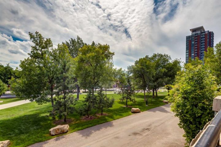 PET FRIENDLY, LARGE SQUARE FOOTAGE (718 sf) LOW CONDO FEES & UNDERGROUND PARKING!!! Welcome the Terrace! This bright and spacious one-bedroom, one-bathroom condo is perfect for professionals, first-time buyers, or those looking to downsize without compromise. Ideally located just steps from Calgary's vibrant 17th Avenue, you'll love the walkable lifestyle with trendy boutiques, top-rated restaurants, and cozy cafés right outside your door. Nestled in a secure gated complex, The Terrace offers underground parking and a beautifully landscaped central courtyard, an ideal spot to enjoy your morning coffee or connect with neighbors. Inside, pride of ownership shines throughout. The open-concept kitchen features crisp white cabinetry and abundant storage, while the convenience of in-suite laundry adds to everyday ease. The generously sized bedroom boasts a large walk-in closet and sliding patio doors leading to a private balcony offering views of the park with a sunny South exposure. Pet owners will appreciate the nearby off-leash dog park just one block away at 14th Ave & 11th St, perfect for furry friends and active lifestyles alike. Don't miss your chance to live in one of Calgary's most sought-after urban communities. Book your private showing today! (photos are virtually staged)