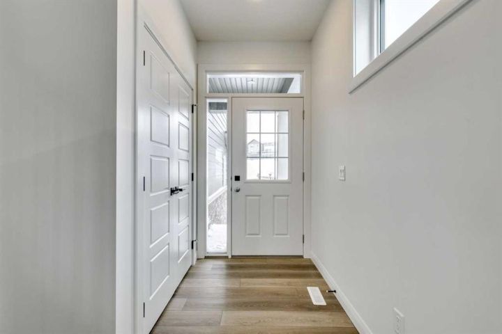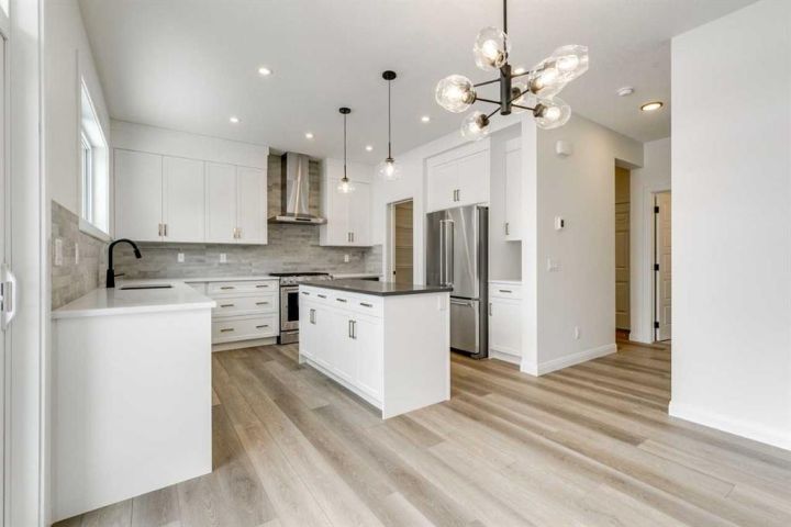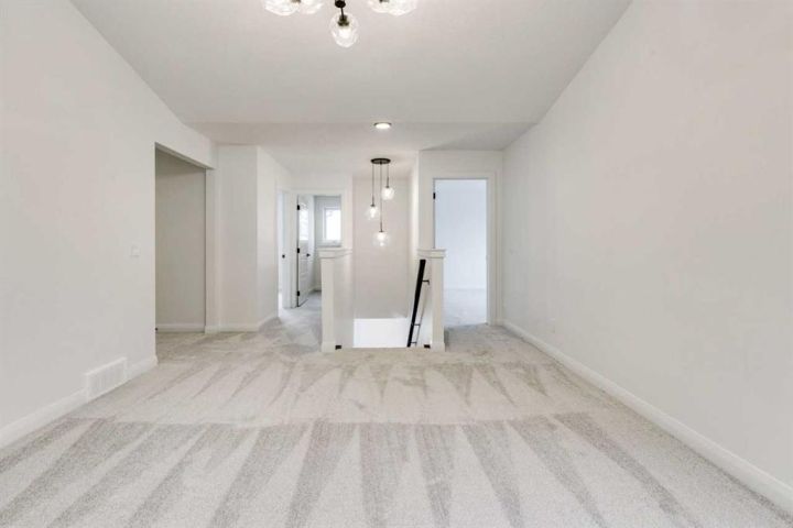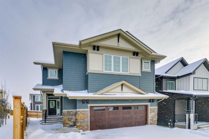 Welcome to the Custom Merritt 2 by Broadview Homes in the desirable community of Hudson Pine Creek — a stunning 2,315 sqft residence walkable to the environmental reserve and designed for modern living. This open-concept layout offers 4 spacious bedrooms, 2.5 baths, a main floor flex room, and a vaulted bonus room perfect for relaxing or entertaining. The chef’s kitchen features stainless steel appliances including a hood fan and built-in microwave, 42” upper cabinets with soffit and crown molding to the ceiling, and sleek granite or quartz countertops. The primary retreat boasts elegant tray ceilings and a luxurious 5-piece ensuite. With 9’ basement ceilings, a sunshine basement, and an oversized double garage, this home blends luxury, comfort, and long-term potential.