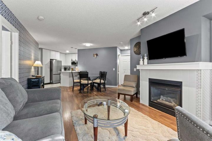 ***HUGE PRICE CORRECTION***Why Rent When You Can Own? Just Steps from MRU! This beautifully renovated 2 bedroom + den main floor condo offers unbeatable value only minutes from Mount Royal University. Inside, you’ll find a bright and welcoming great room anchored by a cozy GAS FIREPLACE, a functional kitchen with ample counter space and SLEEK STAINLESS appliances, and a casual dining area perfect for everyday meals or entertaining. The spacious primary bedroom features a full ensuite and walk-in closet, while a second bedroom, versatile den, 3-piece guest bath, and convenient in-suite laundry complete the layout. Stylish NEW laminate flooring adds a modern touch throughout. Enjoy the outdoors on your large covered patio with a gas BBQ hookup, or take advantage of the building’s excellent amenities, including a FITNESS centre, social room, underground visitor parking, and a beautifully landscaped courtyard. Your own titled underground parking stall is also included. All this in a prime location—just a short walk to MRU, coffee shops, local pubs, and shopping, with easy access to Glenmore Park, major transit routes, and full amenities. This is the perfect opportunity for students, investors, or anyone looking to stop renting and start owning!