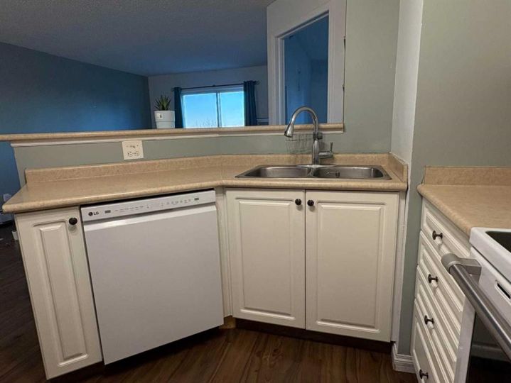This unit is located on the top floor of the 4000 units complex, It's balcony is situated to perfectly view the water bodies overseeing the Stoney Trail. Despite its proximity, traffic noise is minimal. From the elevators, It's a straight and short path to the unit for convenience. The unit is spaciously laid out with privacy between the two bedrooms. There are a total of two bathrooms with one of them located inside the primary bedroom. The living room is brightly lit and give a great view of the balcony, the kitchen makes effective use of its space and has been neatly kept, perfect for a few roommates of a small family starting out.