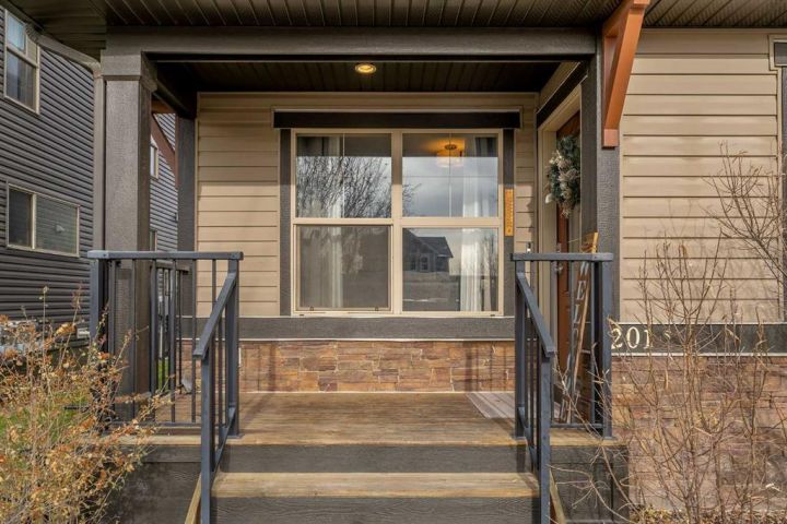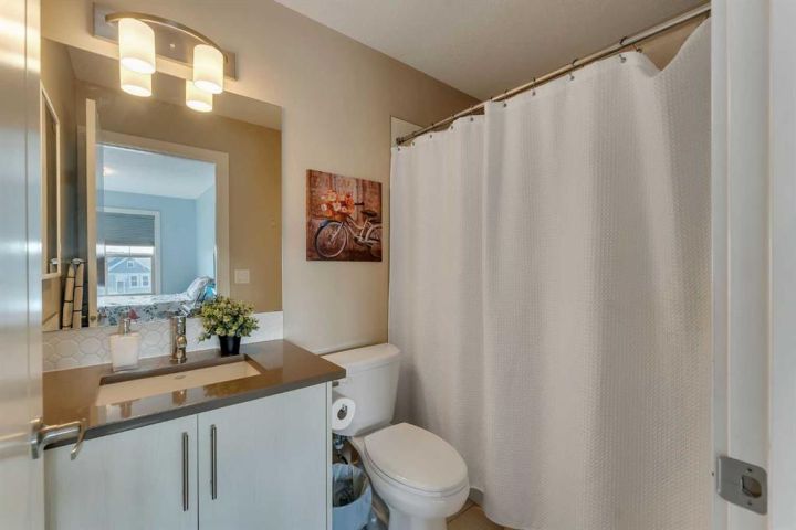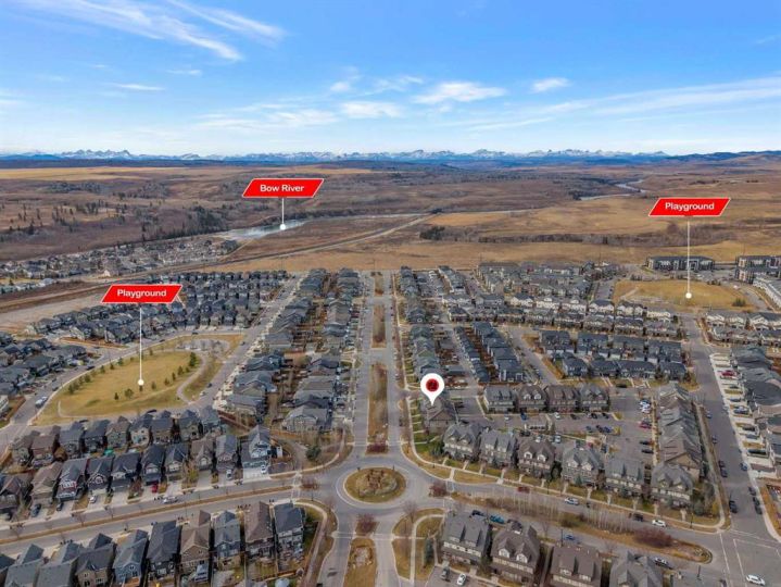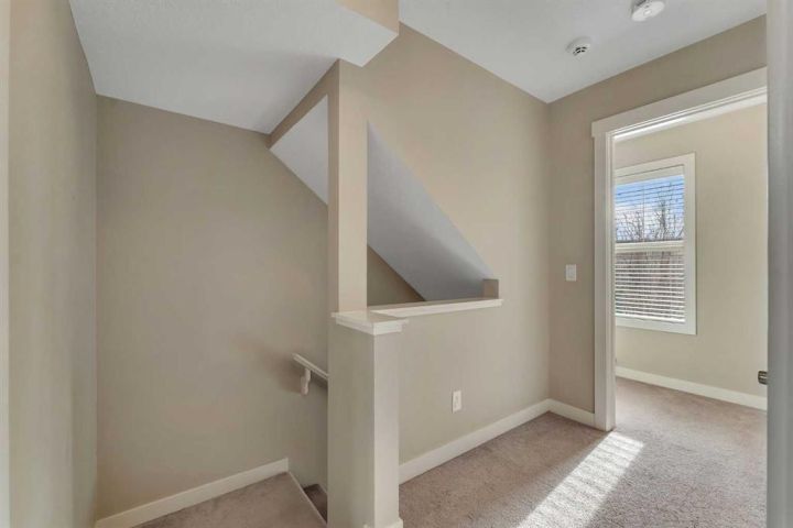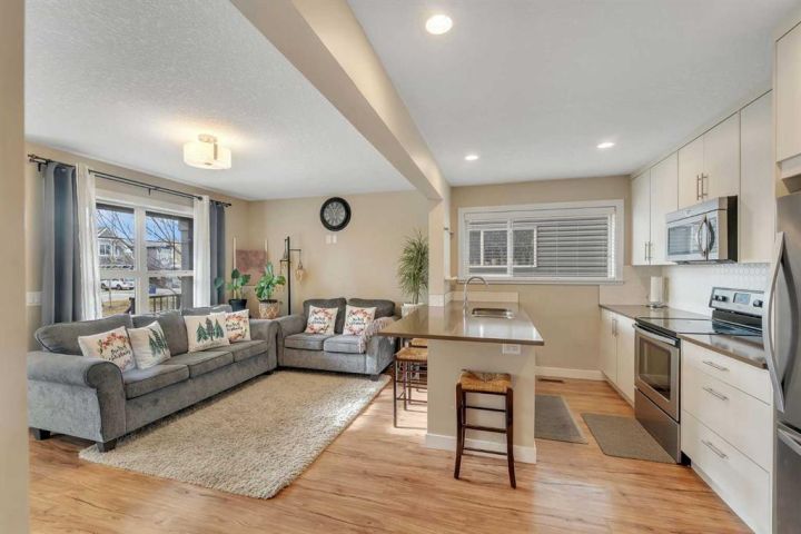 A beautiful townhouse located in one of Cochrane’s best communities Heartland. This home stands out with its charming front porch and eye-catching elevation across all three levels, giving it a unique and inviting presence. As you walk in, you are welcomed by a spacious foyer featuring ceramic tile flooring and a large closet. The main floor offers a bright dining area and a cozy living room filled with natural light from the large windows. The entire level is finished with luxury vinyl plank flooring for a clean and modern look. The fully upgraded kitchen is a true highlight, featuring extended cabinetry up to the ceiling, a stylish milky backsplash, quartz countertops, stainless steel appliances, double sink, pot lights, and a large window. A great-sized pantry completes this functional and beautiful kitchen. Just a few steps down, you’ll find a half bathroom and access to the massive unfinished basement. The basement, including the laundry area, is ready for your personal touch to create additional living or entertainment space.