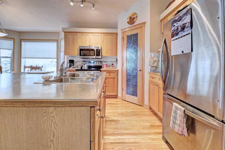 Opportunity comes knocking on your door; welcome to this fabulous three bedroom walk-out bungalow a rare find indeed. Located on a quiet street surrounded by mature landscaping offering privacy and tranquility. The main living space offers an open concept design floorplan with beautiful hardwood flooring. Off the living room; step out onto a raised deck and enjoy a morning breakfast or a nice BBQ in the evening. The large primary bedroom features a large walk-in closet and a three piece ensuite with a convenience of a walk-in shower. The second bedroom on the main floor can be used as an office or as a quiet space for study or reading. AS you enter the walk-out level; you are greeted by a massive recreation room complete with a large wetbar; an ideal room for entertaining. This floor is combined with a large family room with a cozy gas stove for added comfort. The third bedroom is on the lower level; ideal as guest bedroom and there is also a large full bathroom. Garden doors open onto a very private patio for you to enjoy the peaceful surroundings of your garden. Unique to this property is a second driveway that is fully compliant with the City, ideal for just parking another vehicle or even a small RV. For year round comfort; this home also features Central Air Conditioning. The community offers the convenience of abundant walking and cycling pathways, a fabulous community center for you to enjoy, and for golfers there are three great golf courses nearby; minutes away to downtown, and shopping local at the Farmer's Market. This home is in move-in condition and shows pride of ownership throughout. Don't miss out on this fabulous opportunity; call for your private viewing today.