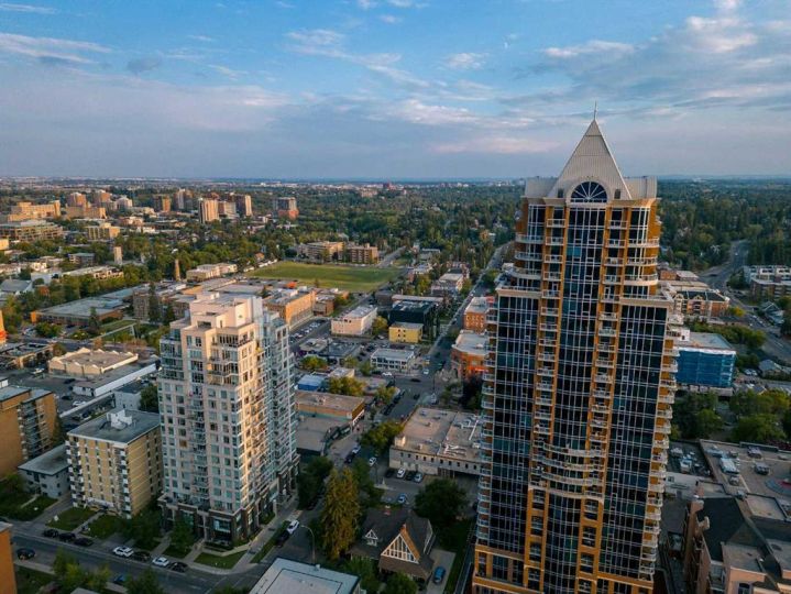 Bright, quiet and perfectly positioned on the 5th floor, this 900 sq ft corner suite features two bedrooms and two full bathrooms and offers the rare combination of serenity with true inner-city convenience. Just steps from 17th Avenue’s restaurants, cafés, shops and nightlife, yet tucked away from the noise. The open-concept layout delivers with hardwood floors, floor-to-ceiling windows, central AC/heating, in-suite laundry and a thoughtful split-bedroom design that gives both the primary and second bedroom excellent privacy! A balcony off of the living room has a gas BBQ hookup for easy outdoor space, and both titled underground parking and a separate storage locker are included. As an architecturally stylish building, the Montana remains a benchmark in Calgary for quality concrete construction. Come and enjoy the low-maintenance luxury that the building is known for: 7-day concierge, a new fitness centre and condo fees that cover heat, water, insurance and more. Priced at $489,999 – this property is impeccably maintained and ready for you to make your new home. Book a private showing today!
