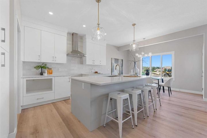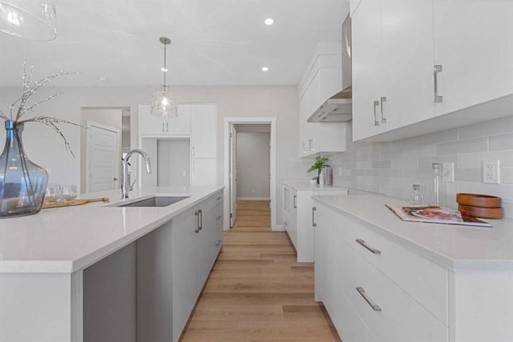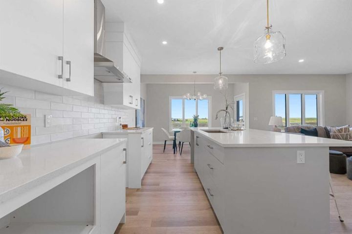 Brand New Genesis Home | The Jordan | Stunning Finishes | 2,136 SqFt | 3 Beds | 2.5 baths | Electric Fireplace | Gas Line to BBQ | Gas Line to Range | Built in Kitchen Appliances | Chimney Hood Fan | Quartz Countertops Throughout | Tray Ceiling in Upper Level Loft | Primary 5pc Ensuite with Double Vanity Sinks & Soaking Tub | Spindle Railing | 9Ft Basement Ceilings | Great Size Backyard | Front Attached Double Garage | Extended Driveway. Welcome home to your stunning brand new home built by Genesis Homes. This 2-storey family home boasts 2,136 SqFt throughout the main and upper levels with an additional 811 SqFt in the unfinished basement. The front door opens to a grand foyer with closet storage and space for bench seating. The main level has a welcoming open floor plan with high ceilings and large windows that emphasize the natural light that fills the home. The sparkling kitchen is outfitted with quartz countertops, built-in appliances, a chimney hood fan and a centre island with barstool seating space. The walkthrough pantry connects the mud room and the kitchen making your grocery drops easy! The dining area is framed with large windows that overlook the backyard and a door that leads to the backyard where you have a BBQ Gas line. The living room is centred with an electric fireplace adding both style and comfort to the space. The main level is complete with a 2pc powder room. The interior is complemented by metal spindle railings, adding a touch of sophistication and durability to the stairways. Upstairs has plush carpet flooring throughout the 3 bedrooms and bonus room. The central bonus room has tray ceilings and is the perfect space to unwind in the evenings with the family. The primary bedroom is a luxurious retreat paired with a deep walk-in closet and private 5pc ensuite bath. The ensuite has a deep soaking tub, walk-in shower with tiles to the ceiling and a double vanity. Bedrooms 2 & 3 are both a great size and share the main 4pc bath with a tub/shower combo. The upper level laundry room is every home owner's dream as its located near all the bedrooms! Downstairs, the unfinished basement is a blank canvas to be designed as your family needs. The large backyard gives you a great outdoor entertainment space when you host in the warm summer months. The Smart Home package provided to you is an added bonus to your convenience. The front attached double garage and driveway provide you with parking for 4 vehicles at any time. Located just 20 minutes from the heart of Calgary - the Clearwater community resides in the beautiful city of Chestermere. Benefiting from it's quiet location, multiple recreation and retail amenities and it's acclaimed lake with beaches and motor vehicle access. Book your showing at this gorgeous Genesis Home today!